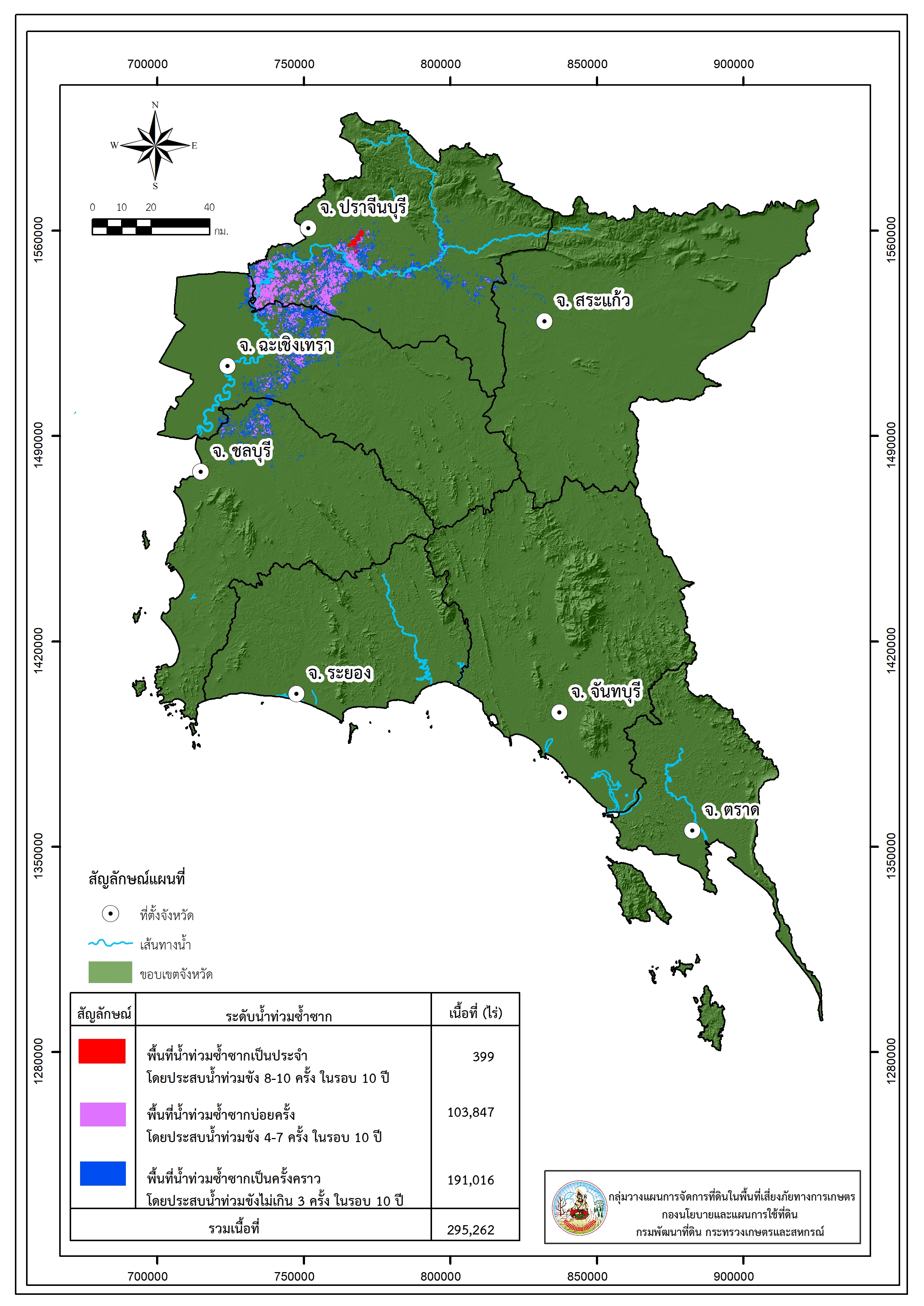 แผนที่น้ำท่วมซ้ำซากภาคตะวันออก จังหวัดปราจีนบุรี ปี 2567 |