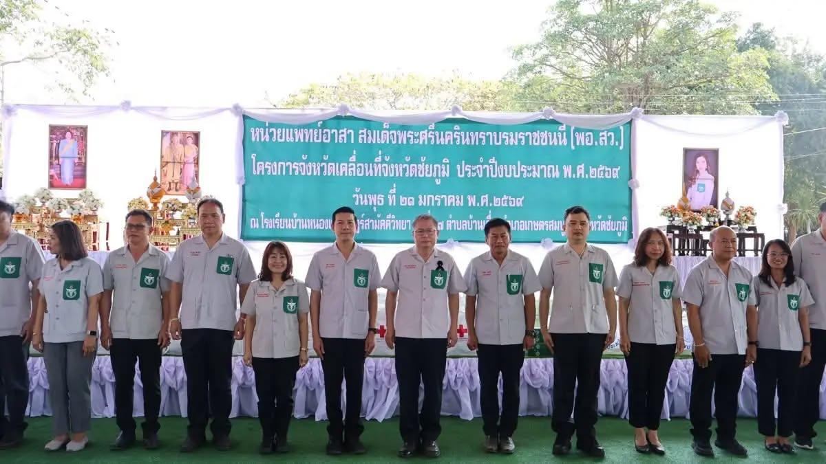 วันที่ 21 มกราคม 2569 เวลา 08.30 น. นายไลซันต์ ตั้งภูมิ ผู้อำนวยการสถานีพัฒนาที่ดินชัยภูมิ พร้อมด้วย นางสาวขวัญสุดา ขันบุตร นักวิชาการเกษตรปฏิบัติการ นายวิบูลย์ ภักดีโชติ นักวิชาการเกษตร และนายสุทัย มณีรุ่ง พนักงานขับรถยนต์ ส.2 ร่วมจัดนิทรรศการด้านการพัฒนาที่ดิน พร้อมทั้งให้คำแนะนำการจัดการดินและปุ๋ย สนับสนุนน้ำหมักชีวภาพ และสารเร่ง พด. ในงานหน่วยแพทย์อาสาสมเด็จพระศรีนครินทราบรมราชชนนี (พอ.สว.) และโครงการจังหวัดเคลื่อนที่ จังหวัดชัยภูมิ ณ โรงเรียนหนองแต้ราษฎร์สามัคคีวิทยา ตำบลบ้านเดื่อ อำเภอเกษตรสมบูรณ์ จังหวัดชัยภูมิ โดยมี นายธงชัย โอฬารพัฒนชัย รองผู้ว่าราชการจังหวัดชัยภูมิ เป็นประธานเปิดงานฯ