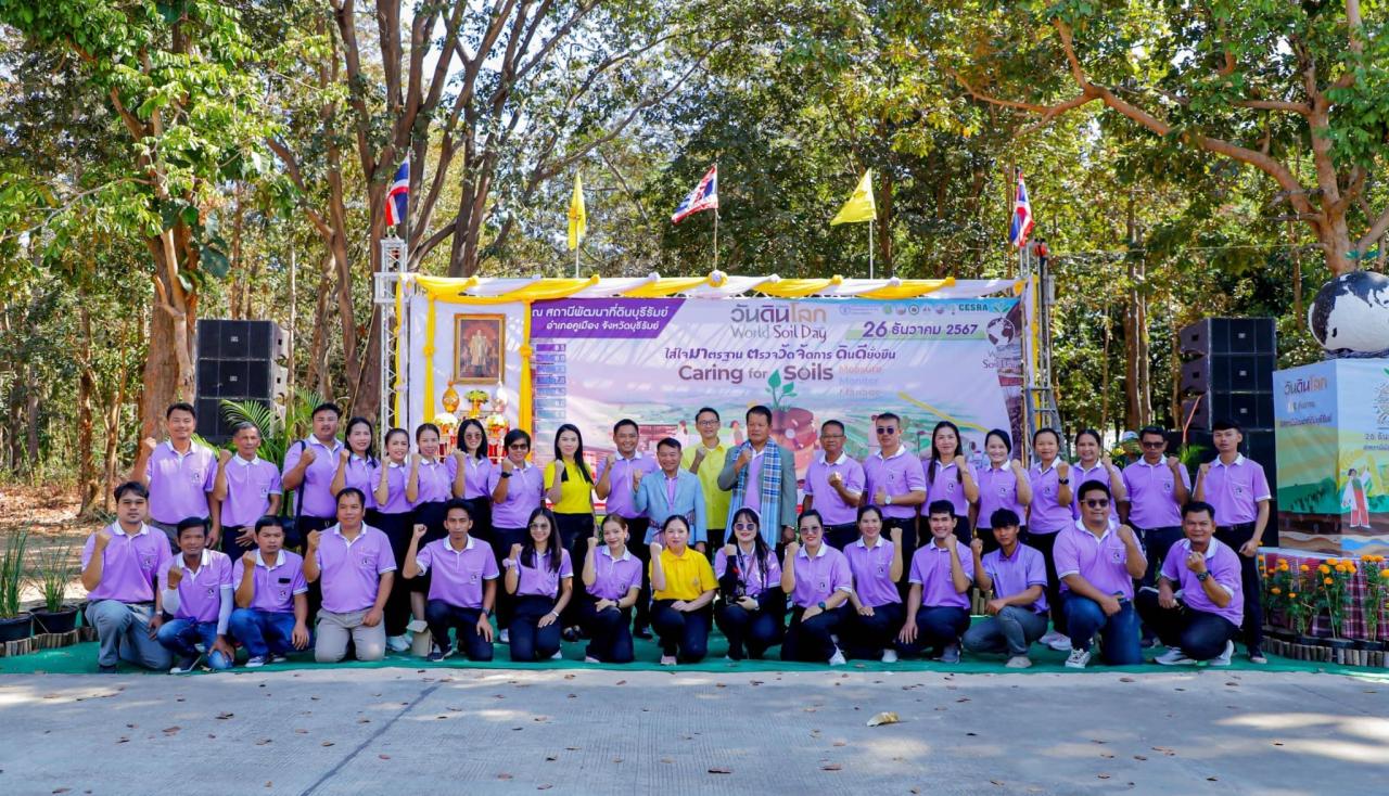 วันพฤหัสบดี ที่ 26 ธันวาคม 2567 สถานีพัฒนาที่ดินบุรีรัมย์ ร่วมกับกลุ่มวิเคราะห์ดิน สพข.3 และหน่วยงานภายในจังหวัดบุรีรัมย์ ร่วมจัดงานวันดินโลก (World Soil Day) ประจำปี 2567 ภายใต้หัวข้อ “ใส่ใจมาตรฐาน ตรวจวัดจัดการ ดินดียั่งยืน (Caring for Soils Measure Monitor Manage)” ณ สถานีพัฒนาที่ดินบุรีรัมย์ ตำบลคูเมือง อำเภอคูเมือง จังหวัดบุรีรัมย์ โดยมี นายจำเริญ แหวนเพ็ชร รองผู้ว่าราชการจังหวัดบุรีรัมย์ รักษาราชการแทนผู้ว่าราชการจังหวัดบุรีรัมย์ เป็นประธานเปิดงานฯ นายสรรเสริญ เจริญศิริ ผู้อำนวยการสถานีพัฒนาที่ดินบุรีรัมย์ กล่าวรายงานฯ และได้รับเกียรติจาก นายอรรถวุฒิ กรุงแสนเมือง ผู้อำนวยการสำนักงานพัฒนาที่ดินเขต 3 พร้อมด้วย นางสาวสยาม ไชยทิพย์ ผู้อำนวยการกลุ่มวางแผนการใช้ที่ดิน และ นางสาวมณฑาทิพย์ สงวนรักษ์ ผู้อำนวยการกลุ่มวิเคราะห์ดิน และหัวหน้าส่วนราชการจังหวัดบุรีรัมย์ หมอดินอาสา และประชาชน จำนวน 250 คน ร่วมพิธีเปิดงานวันดินโลก ประจำปี 2567 วัตถุประสงค์ของการจัดงานฯ เพื่อน้อมรำลึกถึงพระมหากรุณาธิคุณของพระบาทสมเด็จพระบรมชนกาธิเบศร มหาภูมิพลอดุลยเดชมหาราช บรมนาถบพิตร และเผยแพร่พระราชกรณียกิจ การพัฒนาทรัพยากรดินเพื่อการเกษตร รวมทั้งสร้างการรับรู้เรื่องวันดินโลกและตระหนักถึงความสำคัญของทรัพยากรดินให้ประชาชนทั่วไปได้ทราบ โดยกิจกรรมภายในงาน ประกอบด้วย
