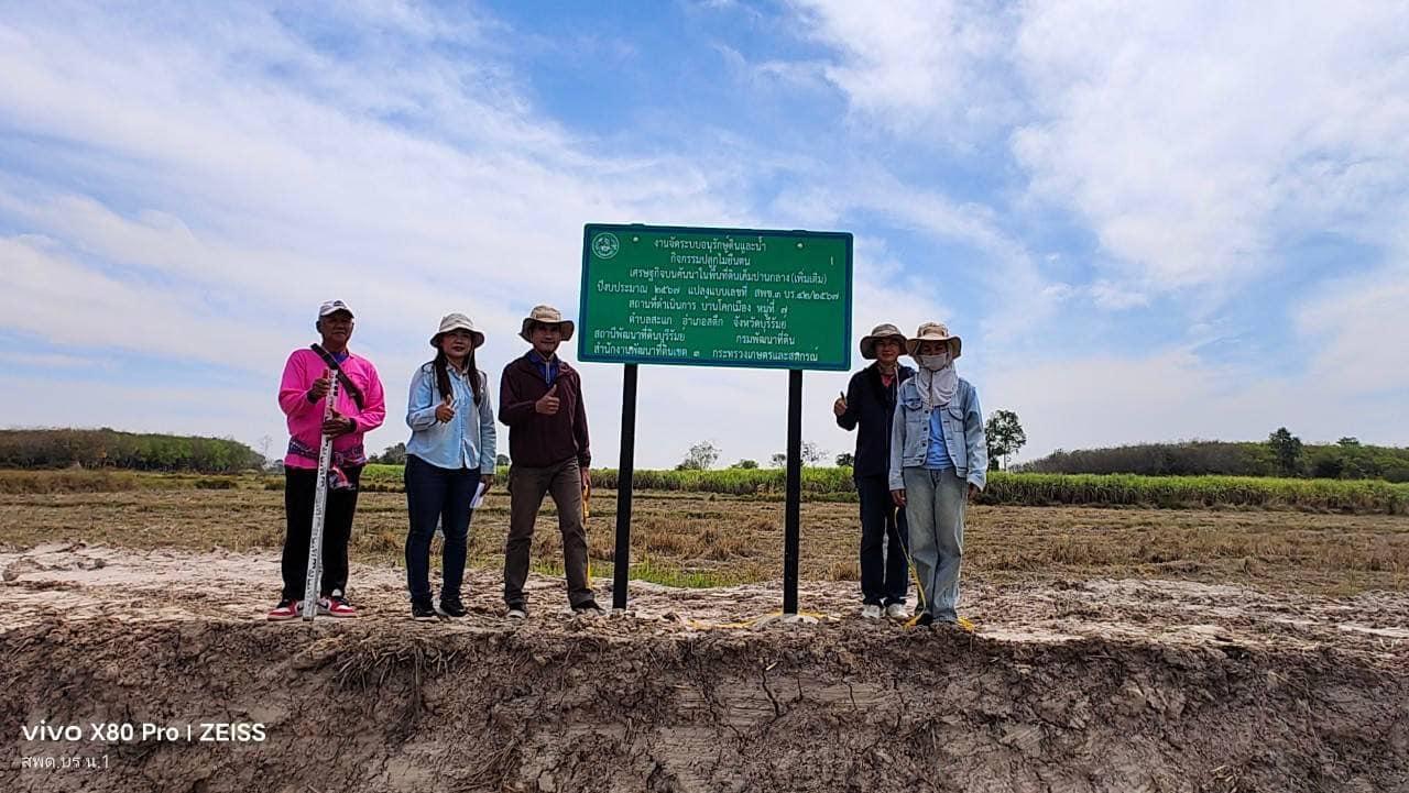 พด.บุรีรัมย์ ตรวจรับงานจัดระบบอนุรักษ์ดินและน้ำ การพัฒนาพื้นที่ดินเค็มปานกลาง (เพิ่มเติม) โครงการจัดระบบอนุรักษ์ดินและน้ำ และปลูกไม้ยืนต้นเศรษฐกิจบนคันนา ปีงบประมาณ 2567 (กันเงินเหลื่อมปี)