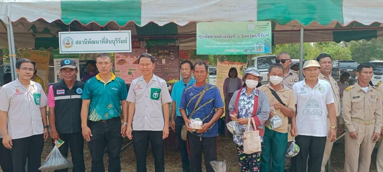 วันพุธที่ 26 มีนาคม 2568 สถานีพัฒนาที่ดินบุรีรัมย์ โดย นายธรรมรัตน์ กังวาลสิงหนาท นักวิชาการเกษตรชำนาญการ พร้อมด้วย นางสาวกานต์รวี ภูสังข์ นักวิชาการเกษตร ร่วมจัดนิทรรศการ "บำบัดทุกข์ บำรุงสุข วิถีใหม่ สร้างรอยยิ้มให้ประชาชน" ณ โรงเรียนบ้านหนองหัวควาย ตำบลชุมแสง อำเภอสตึก จังหวัดบุรีรัมย์ โดยมี นายปิยะ ปิจนำ ผู้ว่าราชการจังหวัดบุรีรัมย์ เป็นประธานในพิธีฯ วัตถุประสงค์เพื่อให้ความสำคัญต่อการบำบัดทุกข์ บำรุงสุข แก้ไขปัญหา ความเดือดร้อนของประชาชนในพื้นที่ มีเกษตรกรเข้าร่วมงาน จำนวน 200 ราย ในการนี้ สพด.บุรีรัมย์ร่วมสนับสนุนปัจจัยการผลิต ได้แก่ สารเร่งซุปเปอร์ พด.1, 2, 3 และ 7 และน้ำหมักชีวภาพ พด.2