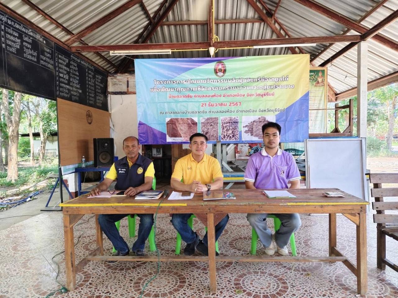 วันศุกร์ที่ 25 เมษายน 2568 เวลา 09:00 น. สถานีพัฒนาที่ดินบุรีรัมย์ โดย นายสืบศักดิ์ แก้ววิชิต นักวิชาการเกษตร พร้อมด้วย นายกิรพัฒน์ สำเรียนรัมย์ นักวิชาการเกษตร ร่วมกับมหาวิทยาลัยราชภัฏบุรีรัมย์ ถ่ายทอดองค์ความรู้การพัฒนาที่ดินภายใต้โครงการพัฒนานวัตกรรมผลิตปุ๋ยอินทรีย์จากมูลไก่ ณ ศาลากลางบ้านตลาดชัย ต.สองห้อง อ.เมืองฯ จ.บุรีรัมย์ เพื่อพัฒนาคุณภาพชีวิตครอบครัวยากจนและกลุ่มเปราะบาง ได้แก่ การผลิตปุ๋ยหมักจากสารเร่งซุปเปอร์ พด.1, การผลิตน้ำหมักชีวภาพจากสารเร่งซุปเปอร์ พด.2 และเทคโนโลยีการพัฒนาที่ดินอื่นๆ