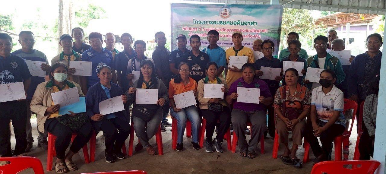 วันพุธ ที่ 28 พฤษภาคม 2568 สถานีพัฒนาที่ดิน โดย นายราชศวรรษ สายกระสุน เจ้าพนักงานการเกษตรชำนาญงาน พร้อมด้วย นายกิรพัฒน์ สำเรียนรัมย์ นักวิชาการเกษตร จัดโครงการอบรมหมอดินอาสา หลักสูตร 3 การพัฒนาศักยภาพของหมอดินอาสา ด้านการพัฒนาที่ดินตามบริบทของท้องถิ่น ปีงบประมาณ 2568 ณ โรงผลิตปุ๋ยอินทรีย์บ้านโคกแสงทอง ม.9 ต.สะแกซำ อ.เมืองบุรีรัมย์ จ.บุรีรัมย์ โดยมี นายสรรเสริญ เจริญศิริ ผู้อำนวยการสถานีพัฒนาที่ดินบุรีรัมย์ เป็นประธานเปิดการฝึกอบรมฯ เพื่อพัฒนาศักยภาพหมอดินอาสาให้ได้เรียนรู้เทคโนโลยีด้านการพัฒนาที่ดินที่เหมาะสมกับสภาพพื้นที่ และมีส่วนร่วมในการแสดงความคิดเห็นแลกเปลี่ยนเรียนรู้ ส่งเสริมและพัฒนาความเข้มแข็งให้กับเครือข่ายหมอดินอาสาให้สามารถเข้าถึงข้อมูลและใช้เทคโนโลยีสารสนเทศได้ สามารถถ่ายทอดองค์ความรู้ด้านการพัฒนาที่ดินให้กับเกษตรกร ประชาชนที่มีความสนใจ สามารถนำไปประยุกต์ใช้ได้อย่างเหมาะสม และก่อให้เกิดเครือข่ายด้านการพัฒนาที่ดินอย่างยั่งยืน และขยายผลสู่เกษตรกรทั่วไป
