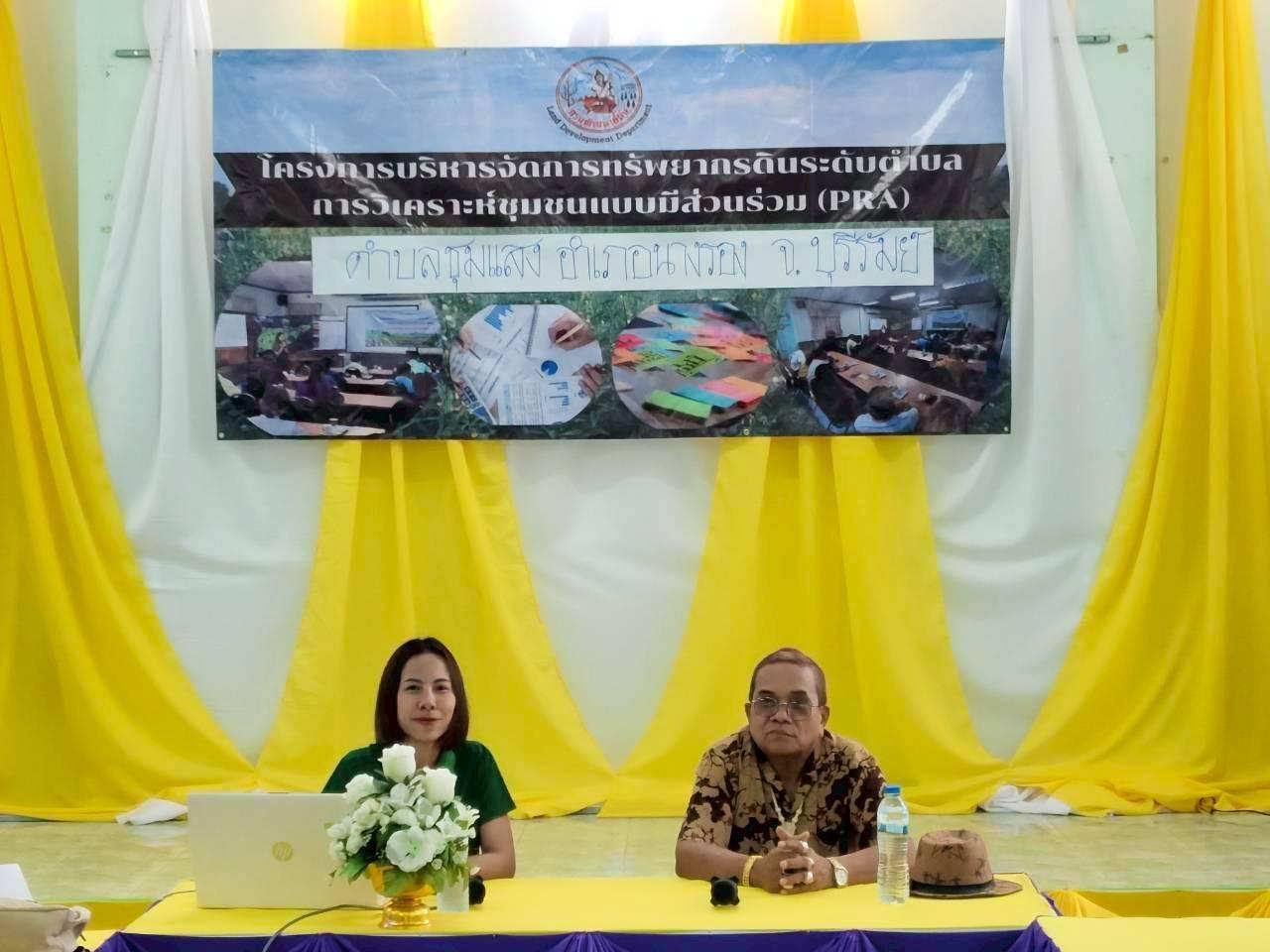 วันพฤหัสบดี ที่ 14 สิงหาคม 2568 สถานีพัฒนาที่ดืนบุรีรัมย์ โดย นางสาวชินาลัย พริ้งเพราะ เจ้าพนักงานการเกษตรปฏิบัติงาน พร้อมด้วย นายอนณ เกิดเอกี นักวิชาการเกษตร และนายแทน วันศุกร์ นักวิชาการเกษตร ร่วมกับองค์การบริหารส่วนตำบลชุมแสง ผู้นำชุมชน หมอดินอาสาและเกษตรกร ดำเนินการจัดทำแผนการใช้ที่ดินระดับตำบล ประจำปี 2568 ผ่านกระบวนการวิเคราะห์ชุมชนแบบมีส่วนร่วม (Participatory Rural Appraisal : PRA) ณ ห้องประชุมองค์การบริหารส่วนตำบลชุมแสง อำเภอนางรอง จังหวัดบุรีรัมย์ เพื่อรับฟังความคิดเห็น ข้อเสนอแนะ ปัญหา และความต้องการของชุมชนในประเด็นต่างๆ เพื่อนำมาจัดทำแผนการใช้ที่ดินระดับตำบลชุมแสง ในการวางแผนการใช้ที่ดินให้เหมาะสมกับสภาพพื้นที่ และศักยภาพของที่ดิน เพื่อให้เกิดประโยชน์สูงสุดและยั่งยืน