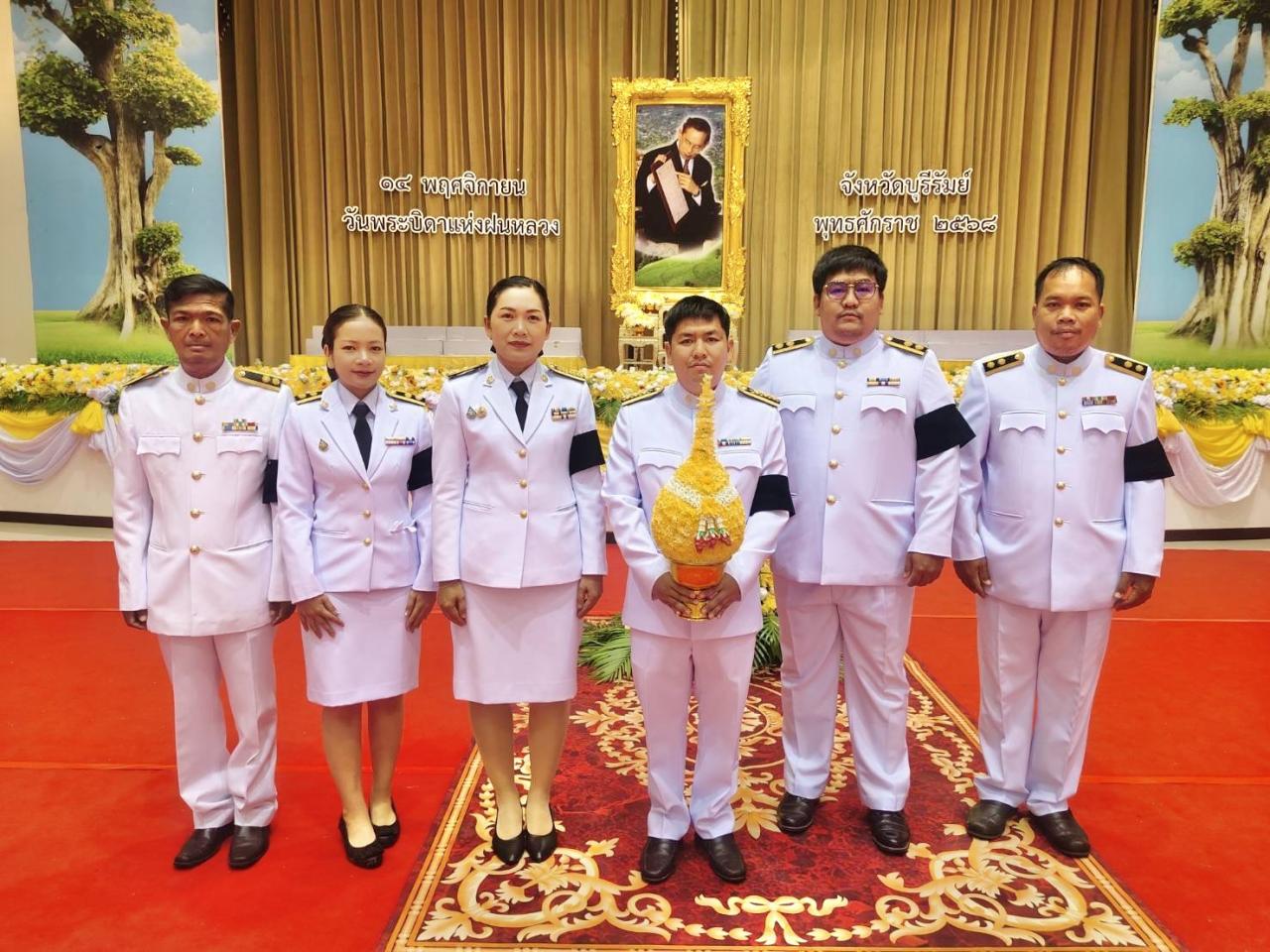 วันศุกร์ที่ 14 พฤศจิกายน 2568 สถานีพัฒนาที่ดินบุรีรัมย์ โดย ฝ่ายวิชาการเพื่อการพัฒนาที่ดินที่ 3 พร้อมด้วย ฝ่ายวิชาการเพื่อการพัฒนาที่ดินที่ 4 ร่วมพิธีวางพานพุ่มดอกไม้สดเนื่องในวันพระบิดาแห่งฝนหลวง ประจำปี 2568 ณ หอประชุมจังหวัดบุรีรัมย์ ศูนย์ราชการจังหวัดบุรีรัมย์ อำเภอเมืองบุรีรัมย์ จังหวัดบุรีรัมย์ เพื่อจารึกไว้ในประวัติศาสตร์ของชาติไทยให้ประชาชนและอนุชนรุ่นหลังได้มีโอกาสแสดงความจงรักภักดี และน้อมรำลึกในพระมหากรุณาธิคุณของพระบาทสมเด็จพระบรมชนกาธิเบศร มหาภูมิพลอดุลยเดชมหาราช บรมนาถบพิตร "พระบิดาแห่งฝนหลวง"