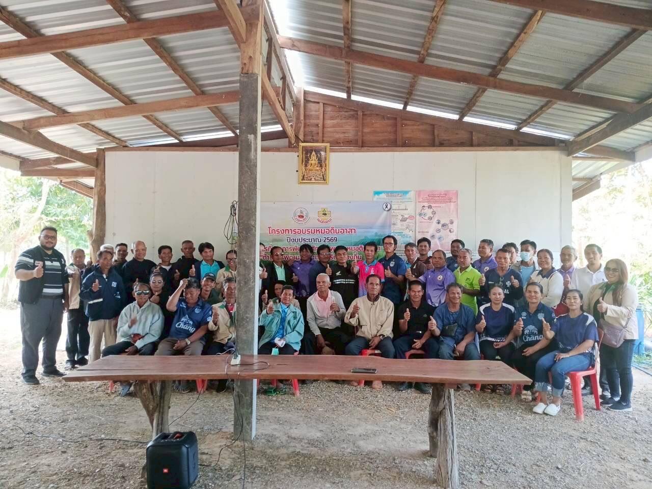 วันพฤหัสบดีที่ 18 ธันวาคม 2568 สถานีพัฒนาที่ดินบุรีรัมย์ โดย นายราชศวรรษ สายกระสุน เจ้าพนักงานการเกษตรชำนาญงาน พร้อมด้วย นายจิราภัทร สมมุติรัมย์ นักวิชาการเกษตร และนายภูมิศักดิ์ ปักการะนัง นักวิชาการเกษตร จัดฝึกอบรมโครงการอบรมหมอดินอาสา หลักสูตร 3 การพัฒนาศักยภาพของหมอดินอาสา ด้านการพัฒนาที่ดินตามบริบทท้องถิ่น ปีงบประมาณ 2569 ณ ศูนย์เรียนรู้การเพิ่มประสิทธิภาพการผลิตสินค้าเกษตร (ศพก.) อำเภอพลับพลาชัย บ้านม่วงหวาน หมู่ที่ 8 ต.จันดุม อ.พลับพลาชัย จ.บุรีรัมย์ วัตถุประสงค์เพื่อพัฒนาศักยภาพหมอดินอาสาให้ได้เรียนรู้เทคโนโลยีด้านการพัฒนาที่ดินที่เหมาะสมกับสภาพพื้นที่และมีส่วนร่วมในการแสดงความคิดเห็นแลกเปลี่ยนเรียนรู้ ส่งเสริมและพัฒนาความเข้มแข็งให้กับเครือข่ายหมอดินอาสาให้สามารถเข้าถึงข้อมูลและใช้เทคโนโลยีสารสนเทศได้ สามารถถ่ายทอดองค์ความรู้ด้านการพัฒนาที่ดินให้กับเกษตรกร ประชาชนที่มีความสนใจ สามารถนำไปประยุกต์ใช้ได้อย่างเหมาะสม และก่อให้เกิดเครือข่ายด้านการพัฒนาที่ดินอย่างยั่งยืน และขยายผลสู่เกษตรกรทั่วไป