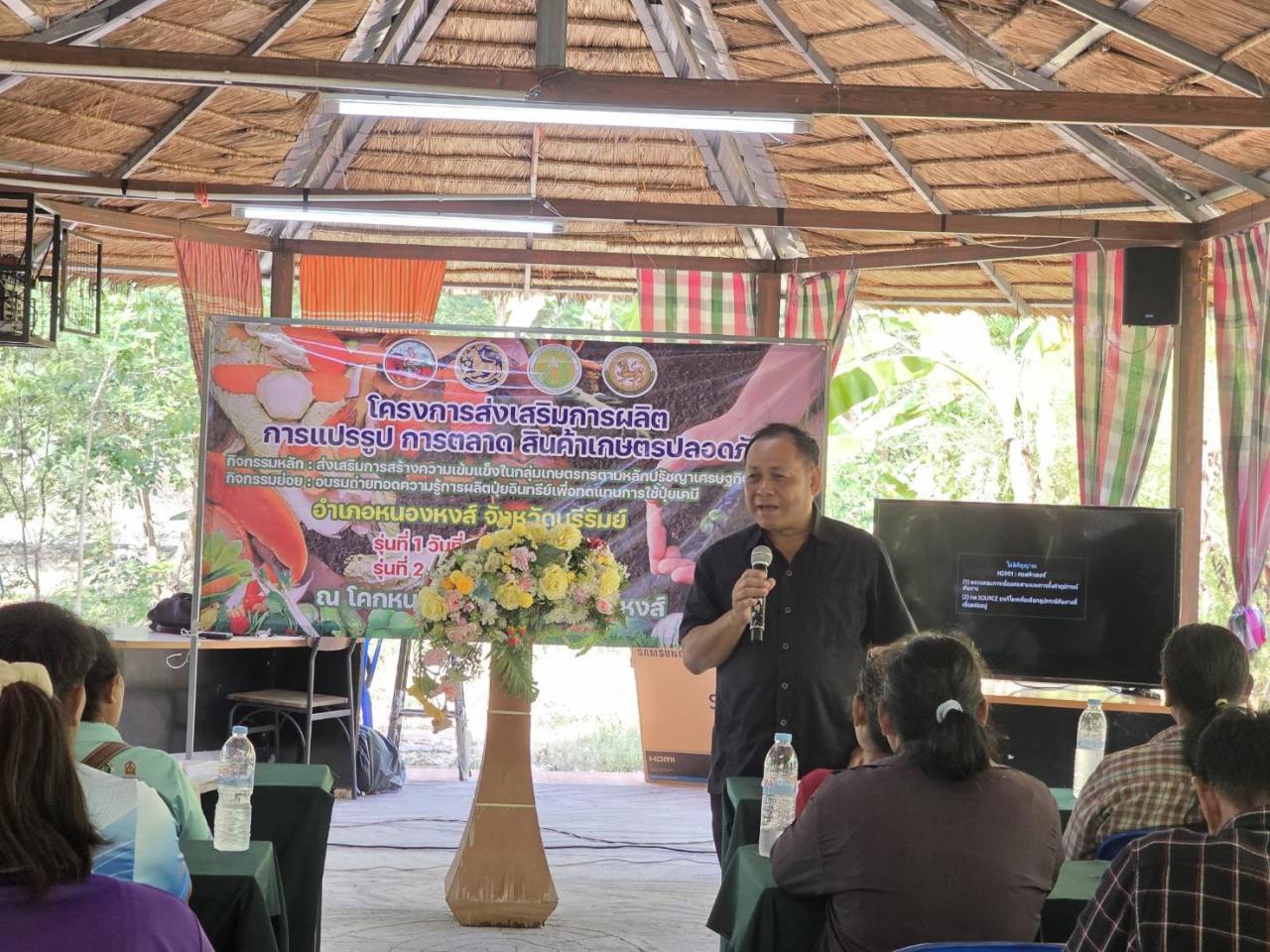 วันศุกร์ ที่ 17 เมษายน 2569 นายวิญญู เสมียนรัมย์ ผู้อำนวยการสถานีพัฒนาที่ดินบุรีรัมย์ พร้อมด้วย นายอุเทน เพ็งพิศ นักวิชาการเกษตร และ นางสาวปฐมพร ยืนยง นักวิชาการเกษตร เข้าร่วมโครงการส่งเสริมการผลิต การแปรรูป การตลาด สินค้าเกษตรปลอดภัย กิจกรรมหลัก : ส่งเสริมการสร้างความเข้มแข็งในกลุ่มเกษตรกร ตามหลักปรัชญาเศรษฐกิจพอเพียง กิจกรรมย่อย: อบรมถ่ายทอดความรู้ การผลิตปุ๋ยอินทรีย์ เพื่อทดแทนการใช้ปุ๋ยเคมี ณ ห้องประชุมรักษ์โลกโคกหนองนา@อำเภอหนองหงส์ โดยมี นายถาวร บุญศรี นายอำเภอหนองหงส์ เป็นประธานเปิดโครงการฯ พร้อมหน่วยงานในสังกัดกระทรวงเกษตรฯ ผู้นำท้องถิ่น และเกษตรกร การจัดกิจกรรมครั้งนี้ถือเป็นการ “kick off” สำคัญในการขับเคลื่อนโครงการส่งเสริมสินค้าเกษตรปลอดภัยเพื่อส่งเสริมให้เกษตรกร ลดต้นทุนการผลิตภาคการเกษตร หันมาใช้ปุ๋ยอินทรีย์ที่เป็นมิตรต่อสิ่งแวดล้อมและสามารถพึ่งพาตนเองได้อย่างยั่งยืน สอดคล้องกับสถานการณ์ปัจจุบัน ที่ปุ๋ยเคมีมีราคาสูงส่งผลกระทบต่อต้นทุน การผลิตของเกษตรกร