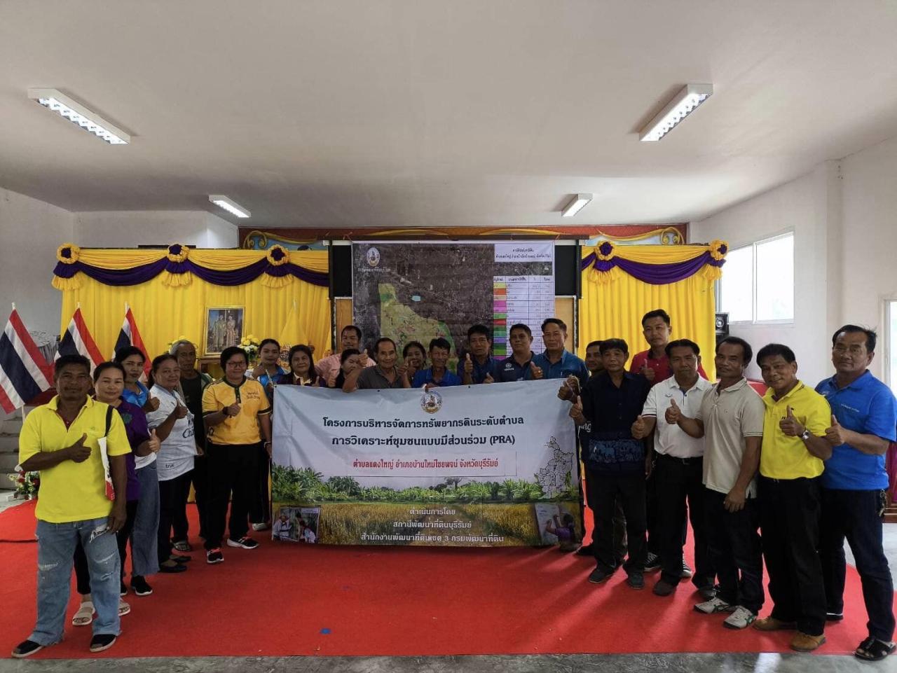 วันอังคาร ที่ 27 สิงหาคม 2567 เวลา 09.00 น. สถานีพัฒนาที่ดินบุรีรัมย์ โดย นางสาวทองสวย พบบุญ นักวิชาการเกษตรชำนาญการ พร้อมด้วย นายโยธิน สีคำ นักวิชาการเกษตร และนายวรินทร์ สมภักดี นักวิชาการเกษตร ดำเนินการจัดประชุมเชิงปฏิบัติการ การวิเคราะห์ชุมชนแบบมีส่วนร่วม(Participatory Rural Appraisal : PRA) เพื่อจัดทำแผนการใช้ที่ดินระดับตำบล ภายใต้โครงการบริหารจัดการทรัพยากรดินระดับตำบล ณ องค์การบริหารส่วนตำบลแดงใหญ่ ตำบลแดงใหญ่ อำเภอบ้านใหม่ไชยพจน์ จังหวัดบุรีรัมย์ วัตถุประสงค์เพื่อให้สมาชิกในชุมชนร่วมกันคิด วิเคราะห์สภาพชุมชนและชี้ถึงปัญหาภายในชุมชนตนเอง นำมาหาข้อสรุป เพื่อให้การจัดทำแผนการใช้ที่ดินระดับตำบล มีความชัดเจน และสามารถนำไปพัฒนาตำบลในพื้นที่เป้าหมายให้มีความเหมาะสมกับสภาพพื้นที่ และเพื่อส่งเสริมให้หน่วยงานในระดับพื้นที่ หรือเกษตรกรสามารถนำแผนการใช้ที่ดินระดับตำบลไปวางแผนพัฒนาพื้นที่ตนเองและนำไปประยุกต์ใช้ต่อไปได้