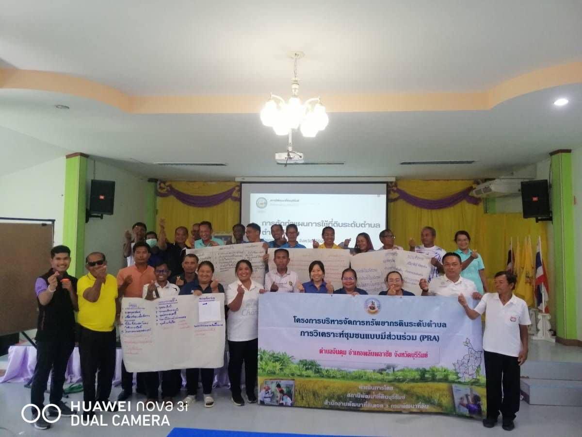 วันศุกร์ ที่ 30 สิงหาคม 2567 สถานีพัฒนาที่ดินบุรีรัมย์ โดย นายอภิชัย กะตะศิลา เจ้าพนักงานการเกษตรปฏิบัติงาน พร้อมด้วย นายอนณ เกิดเอกี นักวิชาการเกษตร ดำเนินการจัดประชุมเชิงปฏิบัติการ การวิเคราะห์ชุมชนแบบมีส่วนร่วม (Participatory Rural Appraisal : PRA) เพื่อจัดทำแผนการใช้ที่ดินระดับตำบล ภายใต้โครงการบริหารจัดการทรัพยากรดินระดับตำบล ณ เทศบาลตำบลจันดุม อำเภอพลับพลาชัย จังหวัดบุรีรัมย์ วัตถุประสงค์เพื่อให้สมาชิกในชุมชนร่วมกันคิด วิเคราะห์สภาพชุมชนและชี้ถึงปัญหาภายในชุมชนตนเอง นำมาหาข้อสรุป เพื่อให้การจัดทำแผนการใช้ที่ดินระดับตำบล มีความชัดเจน และสามารถนำไปพัฒนาตำบลในพื้นที่เป้าหมายให้มีความเหมาะสมกับสภาพพื้นที่ และเพื่อส่งเสริมให้หน่วยงานในระดับพื้นที่ หรือเกษตรกรสามารถนำแผนการใช้ที่ดินระดับตำบลไปวางแผนพัฒนาพื้นที่ตนเองและนำไปประยุกต์ใช้ต่อไปได้