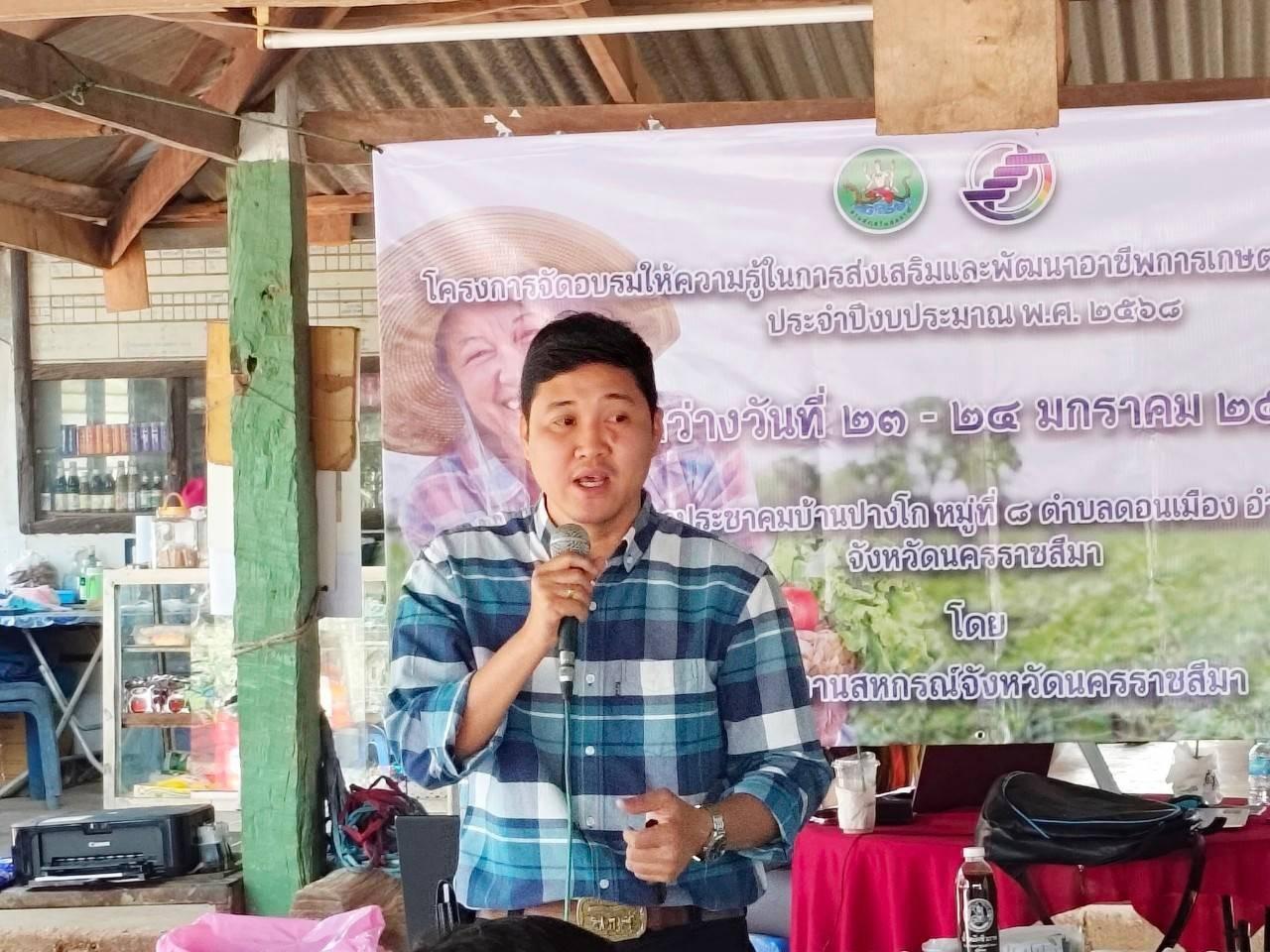 ผู้อำนวยการสถานีพัฒนาที่ดินนครราชสีมา มอบหมายให้ ดร.นพดล การดี นักวิชาการเกษตร ร่วมเป็นวิทยากรบรรยายให้ความรู้ หัวข้อ