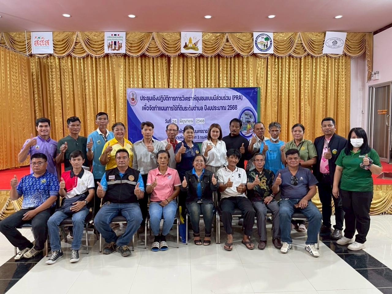 วันที่ 24 มิถุนายน พ.ศ. 2568 เวลา 10.00 น. นายวิญญู เสมียนรัมย์ ผู้อำนวยการสถานีพัฒนาที่ดินนครราชสีมา มอบหมายให้ นายอภิชัย กะตะศิลา นักวิชาการเกษตรปฏิบัติการ พร้อมด้วย นางสาวมนทิรา ภักดีพุดซา นักวิชาการเกษตร ร่วมประชุมเชิงปฏิบัติการ การวิเคราะห์ชุมชนแบบมีส่วนร่วม (PRA) เพื่อจัดทำแผนการใช้ที่ดินระดับตำบล ณ ห้องประชุมองค์การบริหารส่วนตำบลมะเกลือใหม่ อำเภอสูงเนิน จังหวัดนครราชสีมา วัตถุประสงค์เพื่อรักษาเสถียรภาพของทรัพยากรให้เกิดความสมดุลและยั่งยืนภายใต้การพัฒนาด้านต่างๆ ของตำบล มีการใช้ที่ดินมีผลตอบแทนสูงสุดต่อหน่วยเนื้อที่ เกิดการกำหนดแผนงาน โครงการที่สอดคล้องกับแผนการใช้ที่ดินที่กำหนด และอยู่บนหลักการของรูปแบบเศรษฐกิจ BCG