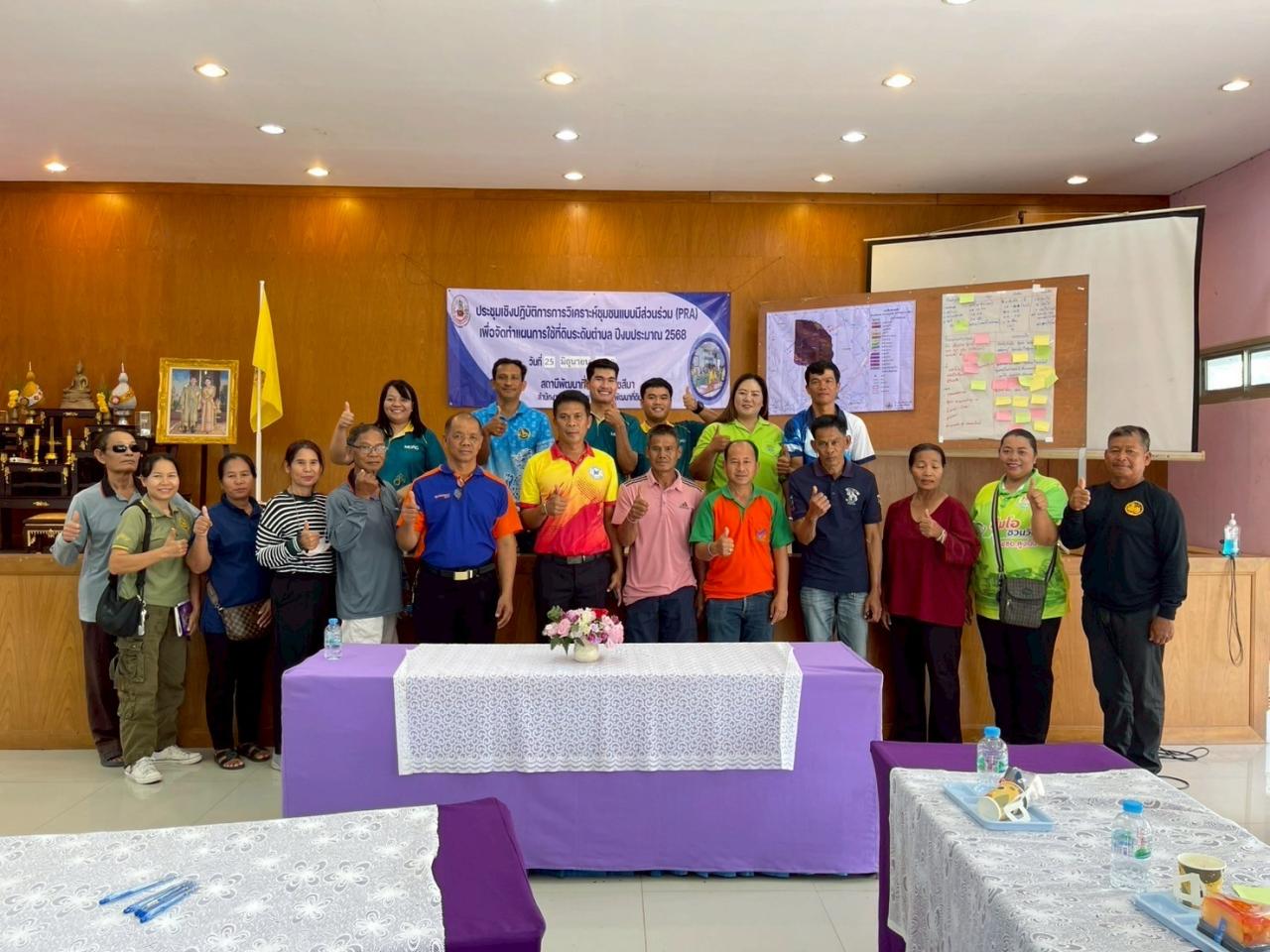 วันที่ 25 มิถุนายน พ.ศ. 2568 เวลา 10.00 น. นายวิญญู เสมียนรัมย์ ผู้อำนวยการสถานีพัฒนาที่ดินนครราชสีมา มอบหมายให้ นายอภิชัย กะตะศิลา นักวิชาการเกษตรปฏิบัติการ พร้อมด้วย นางสาวมนทิรา ภักดีพุดซา และ นายธงธรรม ศิริธร นักวิชาการเกษตร ร่วมประชุมเชิงปฏิบัติการ การวิเคราะห์ชุมชนแบบมีส่วนร่วม (PRA) เพื่อจัดทำแผนการใช้ที่ดินระดับตำบล ณ ห้องประชุมองค์การบริหารส่วนตำบลโนนค่า อำเภอสูงเนิน จังหวัดนครราชสีมา วัตถุประสงค์เพื่อรักษาเสถียรภาพของทรัพยากรให้เกิดความสมดุลและยั่งยืนภายใต้การพัฒนาด้านต่างๆ ของตำบล มีการใช้ที่ดินมีผลตอบแทนสูงสุดต่อหน่วยเนื้อที่ เกิดการกำหนดแผนงาน โครงการที่สอดคล้องกับแผนการใช้ที่ดินที่กำหนด และอยู่บนหลักการของรูปแบบเศรษฐกิจ BCG