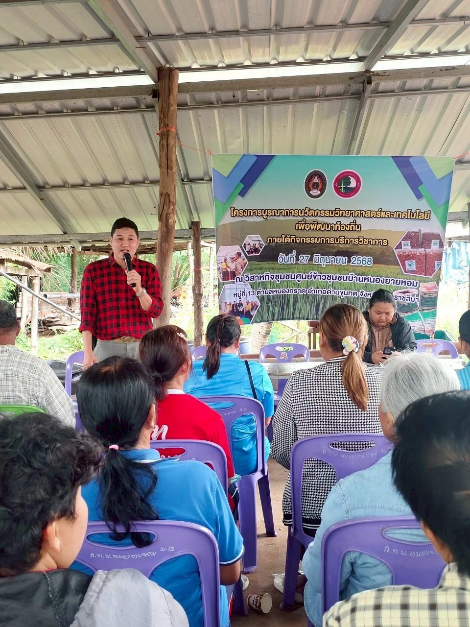 วันที่ 27 มิถุนายน พ.ศ. 2568 เวลา 08.30 น. นายวิญญู เสมียนรัมย์ ผู้อำนวยการสถานีพัฒนาที่ดินนครราชสีมา มอบหมายให้ ดร.นพดล การดี นักวิชาการเกษตร ร่วมเป็นวิทยากรให้ความรู้ เรื่อง การผลิตวัสดุปรับปรุงดินเค็มเพื่อสนับสนุนการทำเกษตรอินทรีย์อย่างยั่งยืน ณ วิสาหกิจชุมชนศูนย์ข้าวชุมชนบ้านหนองยายหอม หมู่ที่ 13 ตำบลหนองกราด อำเภอด่านขุนทด จังหวัดนครราชสีมา วัตถุประสงค์เพื่อพัฒนาศักยภาพคนในชุมชนเครือข่ายนักวิจัยไทยบ้าน (นวัตกรชุมชน) ในการฟื้นฟูดินเค็มและผลิตพืชเศรษฐกิจในพื้นที่ดินเค็ม ในโครงการบูรณาการนวัตกรรมวิทยาศาสตร์และเทคโนโลยีเพื่อพัฒนาท้องถิ่น ส่งผลให้เกิดเป็นระบบเศรษฐกิจฐานรากที่มั่นคงและยั่งยืนของชุมชนอย่างแท้จริง