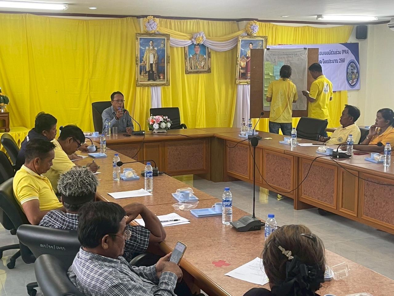 วันที่ 7 กรกฎาคม พ.ศ. 2568 เวลา 08.30 น. นายวิญญู เสมียนรัมย์ ผู้อำนวยการสถานีพัฒนาที่ดินนครราชสีมา มอบหมายให้ นายพลกฤษณ์ การรักษา นักวิชาการเกษตรปฏิบัติการ พร้อมด้วย เจ้าหน้าที่ฯ จัดประชุมเชิงปฏิบัติการ การวิเคราะห์ชุมชนแบบมีส่วนร่วม (PRA) เพื่อจัดทำแผนการใช้ที่ดินระดับตำบล ณ ห้องประชุมองค์การบริหารส่วนตำบลหันห้วยทราย อำเภอประทาย จังหวัดนครราชสีมา วัตถุประสงค์เพื่อรักษาเสถียรภาพของทรัพยากรให้เกิดความสมดุลและยั่งยืนภายใต้การพัฒนาด้านต่างๆ ของตำบล มีการใช้ที่ดินมีผลตอบแทนสูงสุดต่อหน่วยเนื้อที่ เกิดการกำหนดแผนงาน โครงการที่สอดคล้องกับแผนการใช้ที่ดินที่กำหนด และอยู่บนหลักการของรูปแบบเศรษฐกิจ BCG