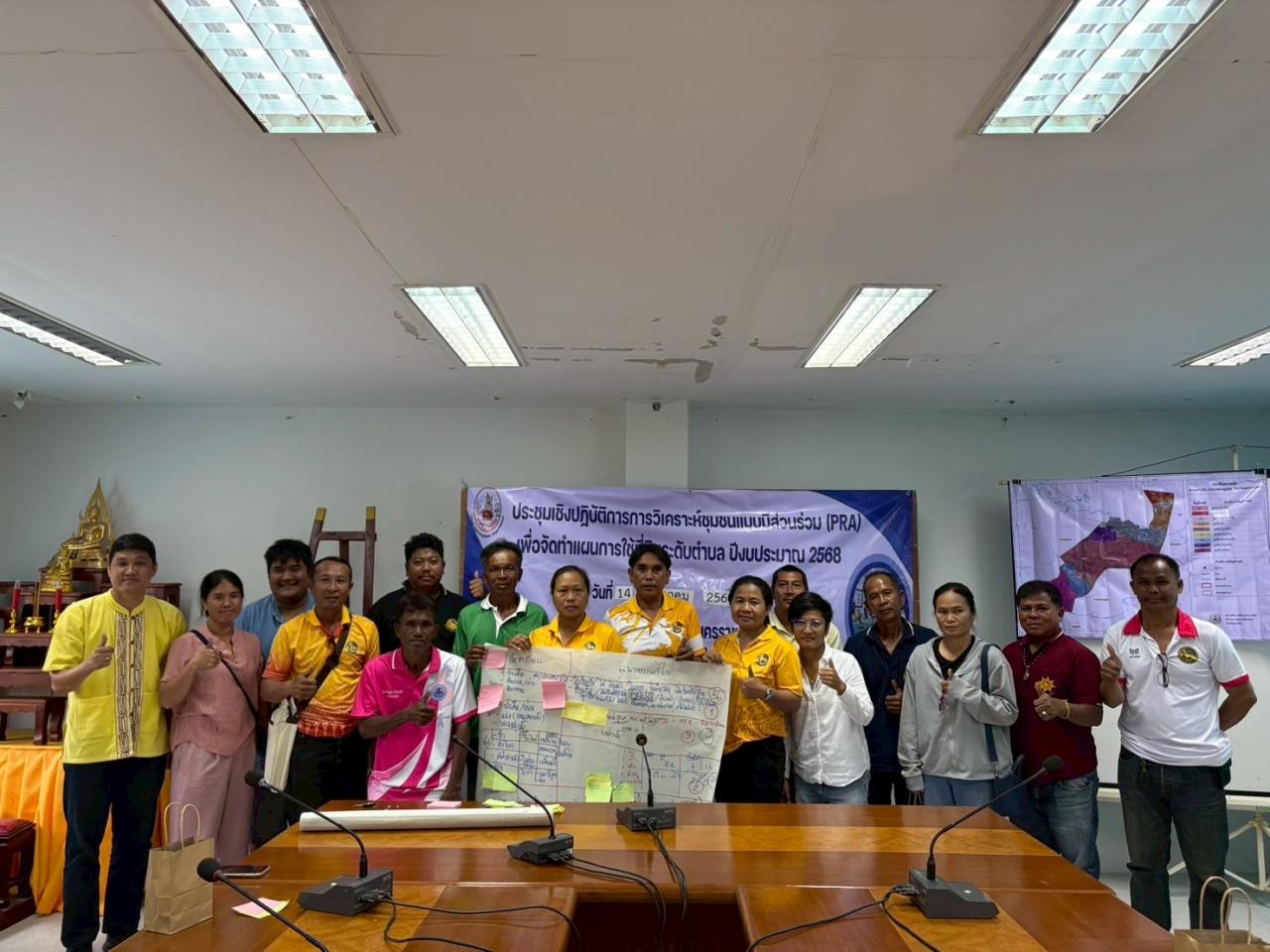 วันที่ 14 กรกฎาคม พ.ศ. 2568 เวลา 09.00 น. นายวิญญู เสมียนรัมย์ ผู้อำนวยการสถานีพัฒนาที่ดินนครราชสีมา มอบหมายให้ นายอุดม ราสูงเนิน ดร.นพดล การดี และ นางสาวประนัฐญา นีพลกรัง นักวิชาการเกษตร จัดประชุมเชิงปฏิบัติการ การวิเคราะห์ชุมชนแบบมีส่วนร่วม (PRA) เพื่อจัดทำแผนการใช้ที่ดินระดับตำบล ณ ห้องประชุมองค์การบริหารส่วนตำบลด่านใน อำเภอด่านขุนทด จังหวัดนครราชสีมา วัตถุประสงค์เพื่อรักษาเสถียรภาพของทรัพยากรให้เกิดความสมดุลและยั่งยืนภายใต้การพัฒนาด้านต่างๆ ของตำบล มีการใช้ที่ดินมีผลตอบแทนสูงสุดต่อหน่วยเนื้อที่ เกิดการกำหนดแผนงาน โครงการที่สอดคล้องกับแผนการใช้ที่ดินที่กำหนด และอยู่บนหลักการของรูปแบบเศรษฐกิจ BCG