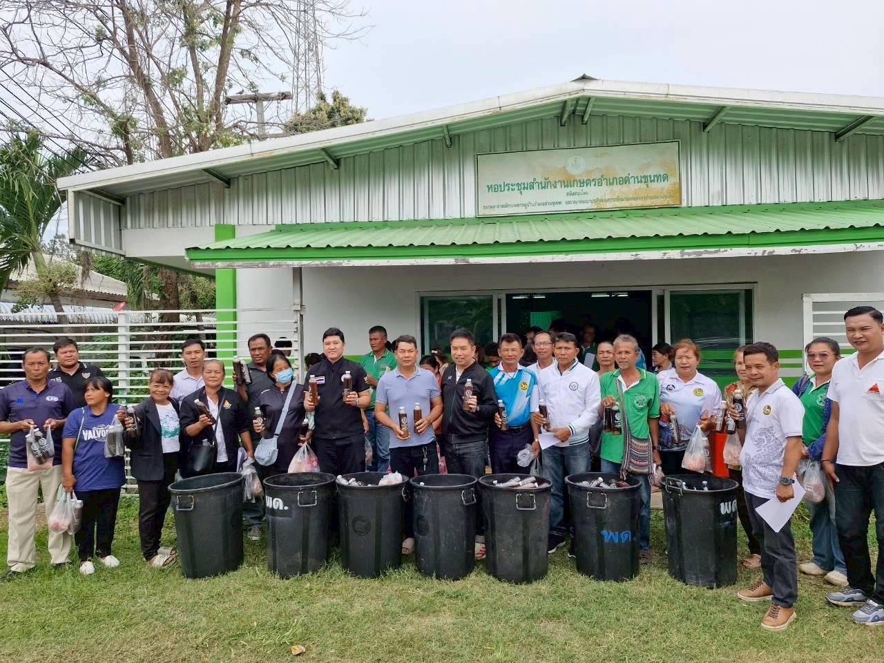วันที่ 27 ตุลาคม พ.ศ. 2568 เวลา 09.30 น. นายวิญญู เสมียนรัมย์ ผู้อำนวยการสถานีพัฒนาที่ดินนครราชสีมา มอบหมายให้ ดร.นพดล การดี นักวิชาการเกษตร ร่วมเป็นวิทยากรให้ความรู้ เรื่อง ปุ๋ยที่ผลิตจากน้ำนมสด และแนวทางการใช้ปุ๋ยในเกษตรกร พร้อมสนับสนุนน้ำหมักนม รวมถึงการประชาสัมพันธ์ “โครงการแหล่งน้ำในไร่นานอกเขตชลประทาน” ให้กับเกษตรกร ในโครงการงานจัดระบบอนุรักษ์ดินและน้ำในพื้นที่เฉพาะ (ดินเค็ม) ณ ห้องประชุมสำนักงานเกษตรอำเภอด่านขุนทด จังหวัดนครราชสีมา วัตถุประสงค์เพื่อให้ความรู้กับเกษตรกรในการนำน้ำนมดิบไปผลิตเป็นปุ๋ยอินทรีย์ “ปุ๋ย พด.” และเป็นการช่วยระบายนมโคที่ล้นตลาด บรรเทาความเดือดร้อนให้กับเกษตรกรในพื้นที่ ช่วยป้องกันไม่ให้น้ำนมต้องถูกเททิ้งโดยเปล่าประโยชน์ พร้อมเป็นแนวทางที่สร้างมูลค่าเพิ่มจากผลผลิตส่วนเกิน ให้เกิดประโยชน์ต่อภาคเกษตรกรรม ซึ่งปุ๋ยที่ผลิตจากน้ำนมสด (หรือน้ำหมักชีวภาพจากนม) ช่วยแก้ไขปัญหา ดินแข็งและดินดาน ได้โดยทำให้ดินร่วนซุยขึ้น และ เร่งการเจริญเติบโตของพืช สามารถบำรุงให้รากแข็งแรง รวมถึงช่วย กระตุ้นการออกดอกออกผล และสามารถใช้เป็นปุ๋ยหมักชีวภาพเพื่อลดการใช้สารเคมีได้อีกด้วย