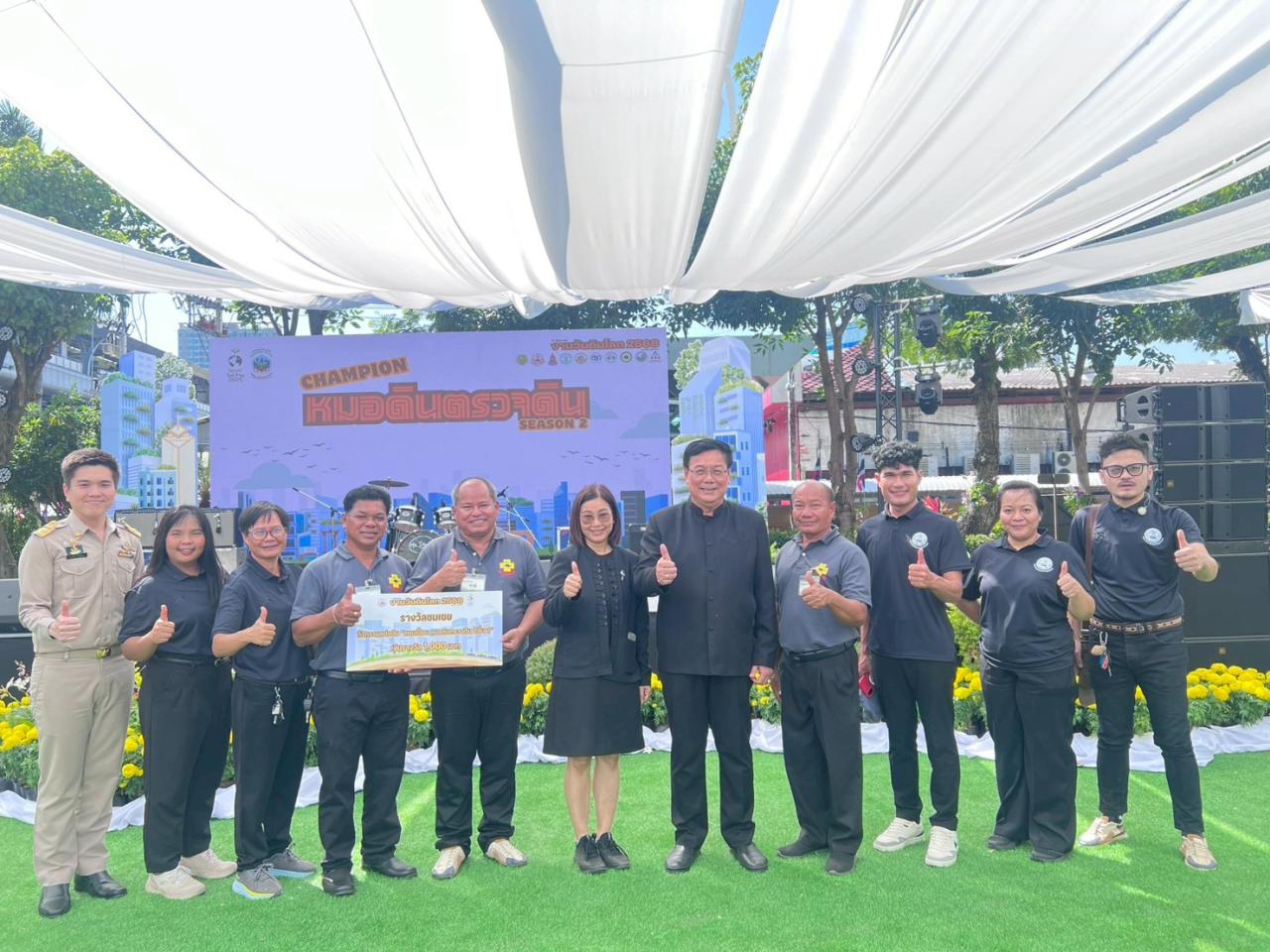 วันที่ 8 ธันวาคม พ.ศ. 2568 เวลา 10.00 น. นางมนัสนันท์ ไชยนุรัตน์ ผู้อำนวยการสถานีพัฒนาที่ดินนครราชสีมา พร้อมด้วย ด้วย นายอภิชัย กะตะศิลา นักวิชาการเกษตรปฏิบัติการ และเจ้าหน้าที่นักวิชาการเกษตร นำทีมหมอดินอาสา 👩🌾👨🌾 เข้าร่วมกิจกรรมแข่งขัน “แชมเปี้ยน หมอดินตรวจดิน Season 2” 🧪 ใครคือสุดยอดหมอดินแห่งปี? โชว์ความแม่นยำในการตรวจวิเคราะห์ดินภาคสนามด้วย LDD Test Kit ในงานวันดินโลก (World Soil Day) ปี 2568 ภายใต้หัวข้อ “Healthy soils for healthy cities : ดินที่สมบูรณ์ สู่เมืองที่สมดุล เกื้อกูลชีวิต” ณ กรมพัฒนาที่ดิน เขตจตุจักร กรุงเทพมหานคร โดยมี นายสุรชาติ มาลาศรี รองอธิบดีกรมพัฒนาที่ดินด้านปฏิบัติการ เป็นประธาน วัตถุประสงค์กิจกรรมแข่งขัน “แชมเปี้ยน หมอดินตรวจดิน Season 2” 🧪 เพื่อให้หมอดินอาสาทุกท่านมาแสดงความสามารถ เป็นเวทีโชว์ความแม่นยำของหมอดินอาสาในการตรวจวิเคราะห์ดินภาคสนามด้วย LDD Test Kit พร้อมแนะการจัดการดินอย่างมืออาชีพ เพื่อส่งเสริมให้หมอดินอาสาสามารถใช้และจัดการดินได้อย่างถูกต้องเหมาะสม พร้อมถ่ายทอดความรู้ให้กับเกษตรกรในพื้นที่ นำไปสู่การเพิ่มผลผลิต ลดต้นทุน และฟื้นฟูความอุดมสมบูรณ์ของดิน นอกจากนี้ยังเป็นการเพิ่มประสิทธิภาพการให้บริการเชิงรุกของกรมพัฒนาที่ดินแก่เกษตรกร ต่อไป
