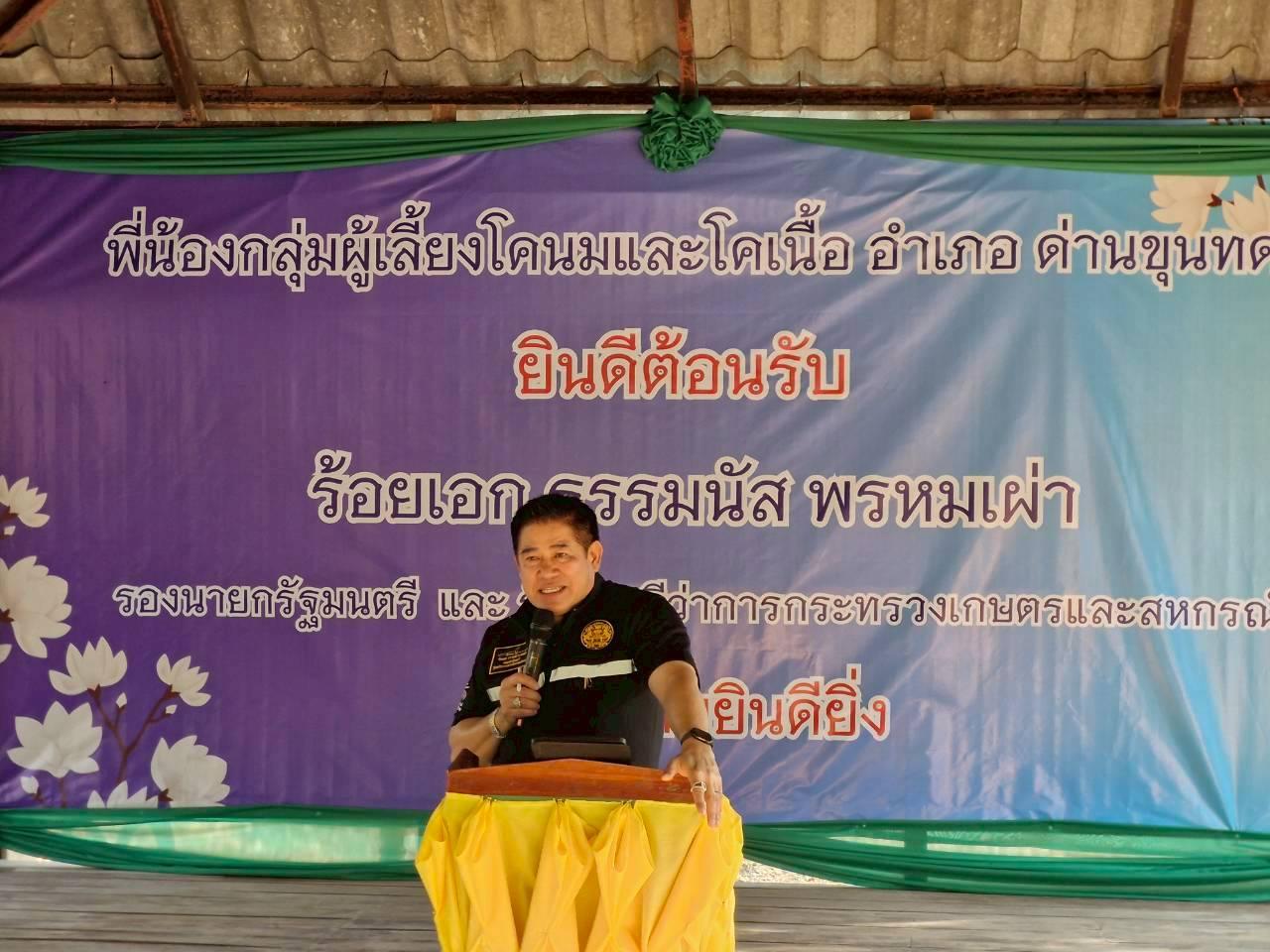 วันที่ 21 มกราคม พ.ศ. 2569 เวลา 13.30 น. นางมนัสนันท์ ไชยนุรัตน์ ผู้อำนวยการสถานีพัฒนาที่ดินนครราชสีมา พร้อมด้วย นายดาวรุ่ง วิสุทธิ์ เจ้าพนักงานการเกษตรชำนาญงาน และ ดร.นพดล การดี นักวิชาการเกษตร ร่วมต้อนรับ ร้อยเอก ธรรมนัส พรหมเผ่า รองนายกรัฐมนตรี และรัฐมนตรีว่าการกระทรวงเกษตรและสหกรณ์ ในการลงพื้นที่ตรวจเยี่ยมเกษตรกรกลุ่มผู้เลี้ยงโคนมและโคเนื้อพื้นที่อำเภอด่านขุนทด จังหวัดนครราชสีมา วัตถุประสงค์เพื่อรับฟังปัญหา สรุปความต้องการ แก้ไขอุปสรรคในการเลี้ยงโคนมและโคเนื้อ พร้อมส่งเสริมการผลิตยกระดับคุณภาพชีวิตของเกษตรกร สร้างความมั่นคงทางอาชีพ และผลักดันการบริโภคนมไทย ให้เข้มแข็งและยั่งยืน โดยการบูรณาการความร่วมมือของทุกฝ่าย เพื่อสร้างความแข็งแกร่งให้กับพี่น้องเกษตรกรโคนมและโคเนื้อในพื้นที่ ให้เติบโตอย่างมั่นคงและยั่งยืน