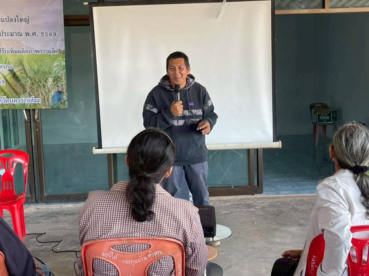 วันที่ 27 มกราคม พ.ศ. 2569 เวลา 09.00 น. นางมนัสนันท์ ไชยนุรัตน์ ผู้อำนวยการสถานีพัฒนาที่ดินนครราชสีมา มอบหมายให้ นายอุดม ราสูงเนิน นักวิชาการเกษตร ร่วมเป็นวิทยากรให้ความรู้ เรื่อง รู้ดิน รู้ปุ๋ย การใช้ปุ๋ยอย่างมีประสิทธิภาพ โครงการส่งเสริมการเกษตรแบบแปลงใหญ่ ณ ที่ทำการกลุ่มแปลงใหญ่อ้อยโรงงาน หมู่ที่ 4 ตำบลสำนักตะคร้อ อำเภอเทพารักษ์ จังหวัดนครราชสีมา วัตถุประสงค์เพื่อสนับสนุนให้เกษตรกรรายย่อยรวมกลุ่มกันผลิตและบริหารจัดการร่วมกัน เพื่อลดต้นทุน เพิ่มประสิทธิภาพการผลิต ผลผลิตมีคุณภาพมาตรฐานตามความต้องการของตลาด และเพิ่มโอกาสในการแข่งขัน นำไปสู่การสร้างรายได้ที่ยั่งยืนผ่านการบูรณาการความร่วมมือจากทั้งภาครัฐและภาคเอกชน
