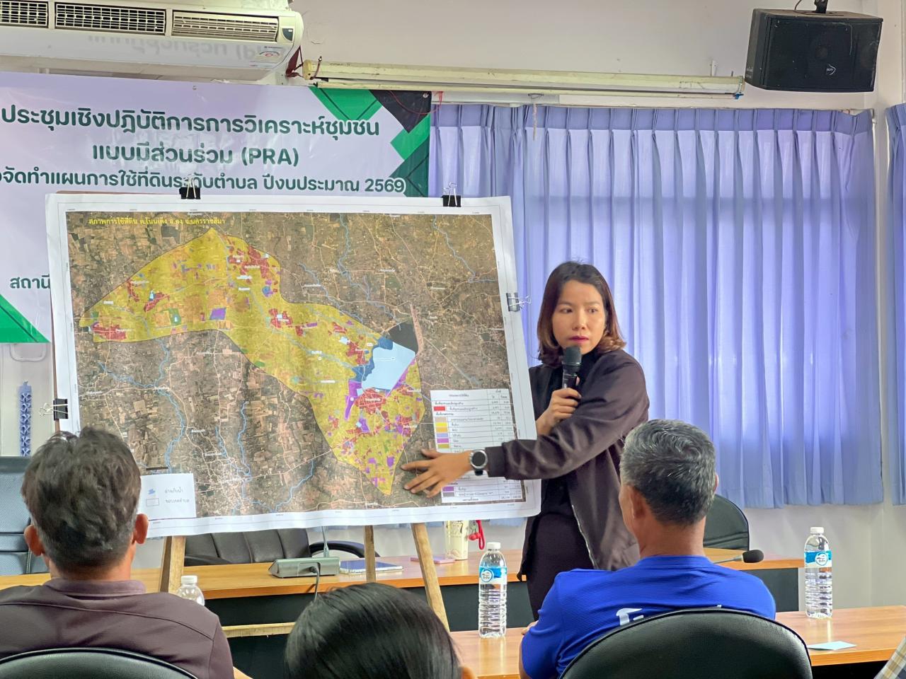 วันที่ 26 กุมภาพันธ์ พ.ศ. 2569 เวลา 09.00 น. นางมนัสนันท์ ไชยนุรัตน์ ผู้อำนวยการสถานีพัฒนาที่ดินนครราชสีมา มอบหมายให้ นางสาวสายฝน ซอพิมาย นักวิชาการเกษตรชำนาญการ พร้อมด้วย นายปวเรศ สุขสว่าง และนางสาวเพ็ญพร หินนอก นักวิชาการเกษตร จัดประชุมเชิงปฏิบัติการ การวิเคราะห์ชุมชนแบบมีส่วนร่วม (PRA) เพื่อจัดทำแผนการใช้ที่ดินระดับตำบล ณ องค์การบริหารส่วนตำบลโนนเต็ง อำเภอคง จังหวัดนครราชสีมา วัตถุประสงค์เพื่อรักษาเสถียรภาพของทรัพยากรให้เกิดความสมดุลและยั่งยืนภายใต้การพัฒนาด้านต่างๆ ของตำบล มีการใช้ที่ดินมีผลตอบแทนสูงสุดต่อหน่วยเนื้อที่ เกิดการกำหนดแผนงาน โครงการที่สอดคล้องกับแผนการใช้ที่ดินที่กำหนด และอยู่บนหลักการของรูปแบบเศรษฐกิจ BCG