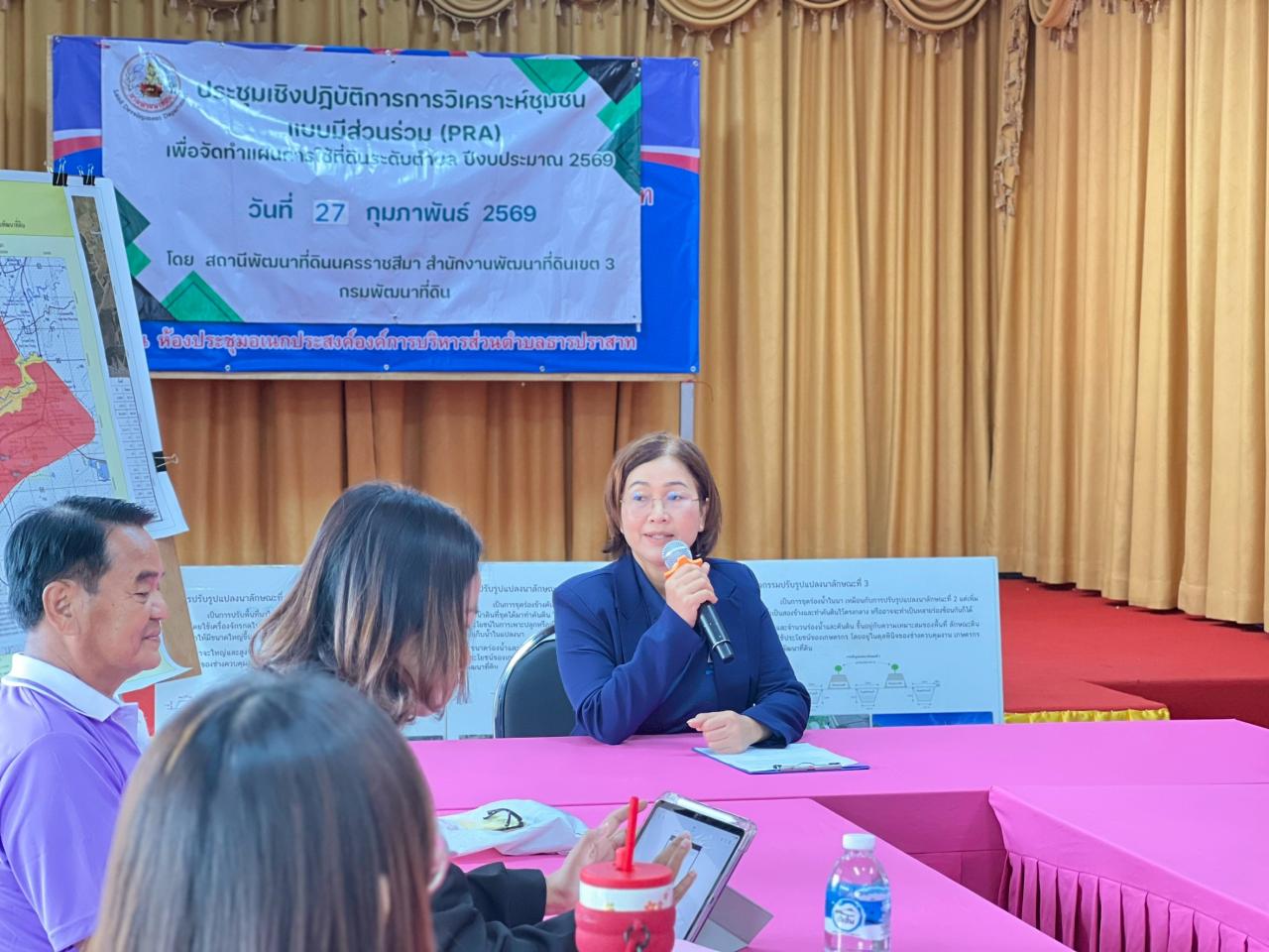 วันที่ 27 กุมภาพันธ์ พ.ศ. 2569 เวลา 09.00 น. นางมนัสนันท์ ไชยนุรัตน์ ผู้อำนวยการสถานีพัฒนาที่ดินนครราชสีมา พร้อมด้วย นางสาวสายฝน ซอพิมาย นักวิชาการเกษตรชำนาญการ พร้อมด้วย นางสาวนคณิศร นักปาละโถ นายปวเรศ สุขสว่าง และนางสาวเพ็ญพร หินนอก นักวิชาการเกษตร จัดประชุมเชิงปฏิบัติการ การวิเคราะห์ชุมชนแบบมีส่วนร่วม (PRA) เพื่อจัดทำแผนการใช้ที่ดินระดับตำบล ณ ที่ทำการองค์การบริหารส่วนตำบลธารปราสาท อำเภอโนนสูง จังหวัดนครราชสีมา วัตถุประสงค์เพื่อรักษาเสถียรภาพของทรัพยากรให้เกิดความสมดุลและยั่งยืนภายใต้การพัฒนาด้านต่างๆ ของตำบล มีการใช้ที่ดินมีผลตอบแทนสูงสุดต่อหน่วยเนื้อที่ เกิดการกำหนดแผนงาน โครงการที่สอดคล้องกับแผนการใช้ที่ดินที่กำหนด และอยู่บนหลักการของรูปแบบเศรษฐกิจ BCG