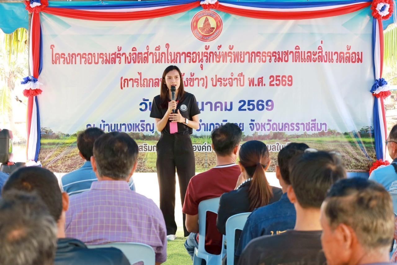 วันที่ 5 มีนาคม พ.ศ. 2569 เวลา 08.30 น. นางมนัสนันท์ ไชยนุรัตน์ ผู้อำนวยการสถานีพัฒนาที่ดินนครราชสีมา มอบหมายให้ นายชุติพงศ์ ศรีษะแก้ว นักวิชาการเกษตร นางสาวสุนารี ศรกล้า นักวิชาการเกษตร และนายอดิศร ยินดี เจ้าพนักงานการเกษตร ร่วมเป็นวิทยากรให้ความรู้ โครงการอบรมสร้างจิตสำนึกในการอนุรักทรัพยากรธรรมชาติและสิ่งแวดล้อม (การไถกลบตอซังข้าว) ประจำปีงบประมาณ พ.ศ. 2569 ณ บ้านนางเหริญ หมู่ 6 ตำบลในเมือง อำเภอพิมาย จังหวัดนครราชสีมา วัตถุประสงค์เพื่อให้เกษตรกรเปลี่ยนพฤติกรรมจากการผาฟางเป็นไถกลบ เพื่อลดฝุ่น PM 2.5 และภาวะโลกร้อน ส่งเสริมให้เกิดการย่อยสลายตอซังในแปลง ซึ่งเพิ่มอินทรีย์วัตถุและธาตุอาหารในดิน ทำให้ดินดี อุดมสมบูรณ์ ให้เกษตรกรสร้างจิตสำนึกรณรงค์ให้เกษตรกรตระหนักถึงความสำคัญของการอนุรักษ์ทรัพยากรดินและสิ่งแวดล้อม ให้เกษตรกรลดต้นทุน ลดการใช้ปุ๋ยเคมีจากการปรับปรุงบำรุงดินด้วยวิธีการไถกลบและใช้เครื่องจักรกลการเกษตรได้อย่างมีประสิทธิภาพ