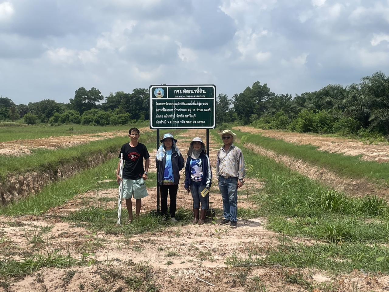 นางสาววรารัตน์ ลีวรางกุล ผู้อำนวยการสถานีพัฒนาที่ดินปราจีนบุรี มอบหมายนายสาโรช ดุรงค์กาญจน์ นักวิชาการเกษตรชำนาญการ นำคณะกรรมการตรวจรับงาน ตรวจงานก่อสร้างงานจัดระบบอนุรักษ์ดินและน้ำในพื้นที่ลุ่ม-ดอน ปีงบประมาณ 2567 จำนวน 100 ไร่