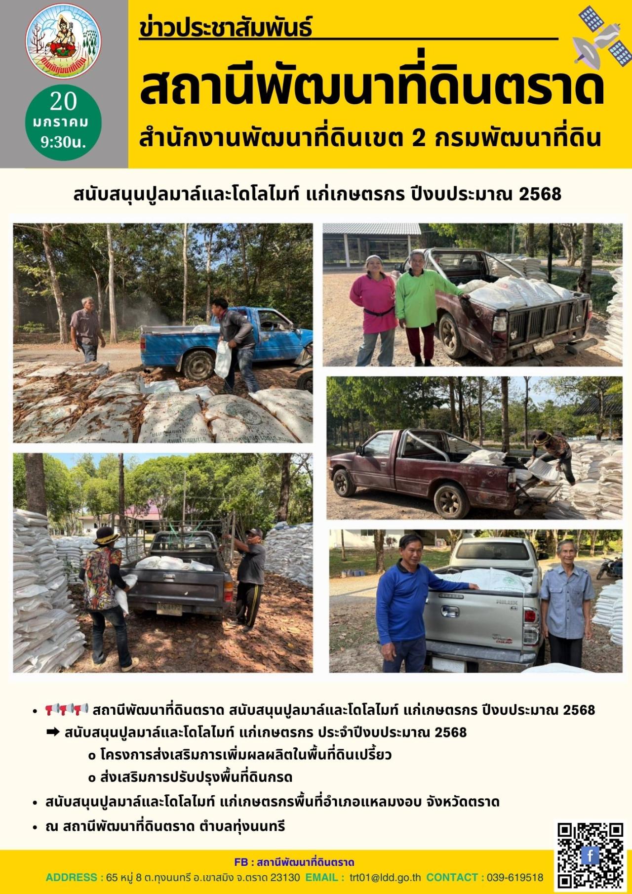 📢📢📢 สถานีพัฒนาที่ดินตราด สนับสนุนปูลมาล์และโดโลไมท์ แก่เกษตรกร ปีงบประมาณ 2568