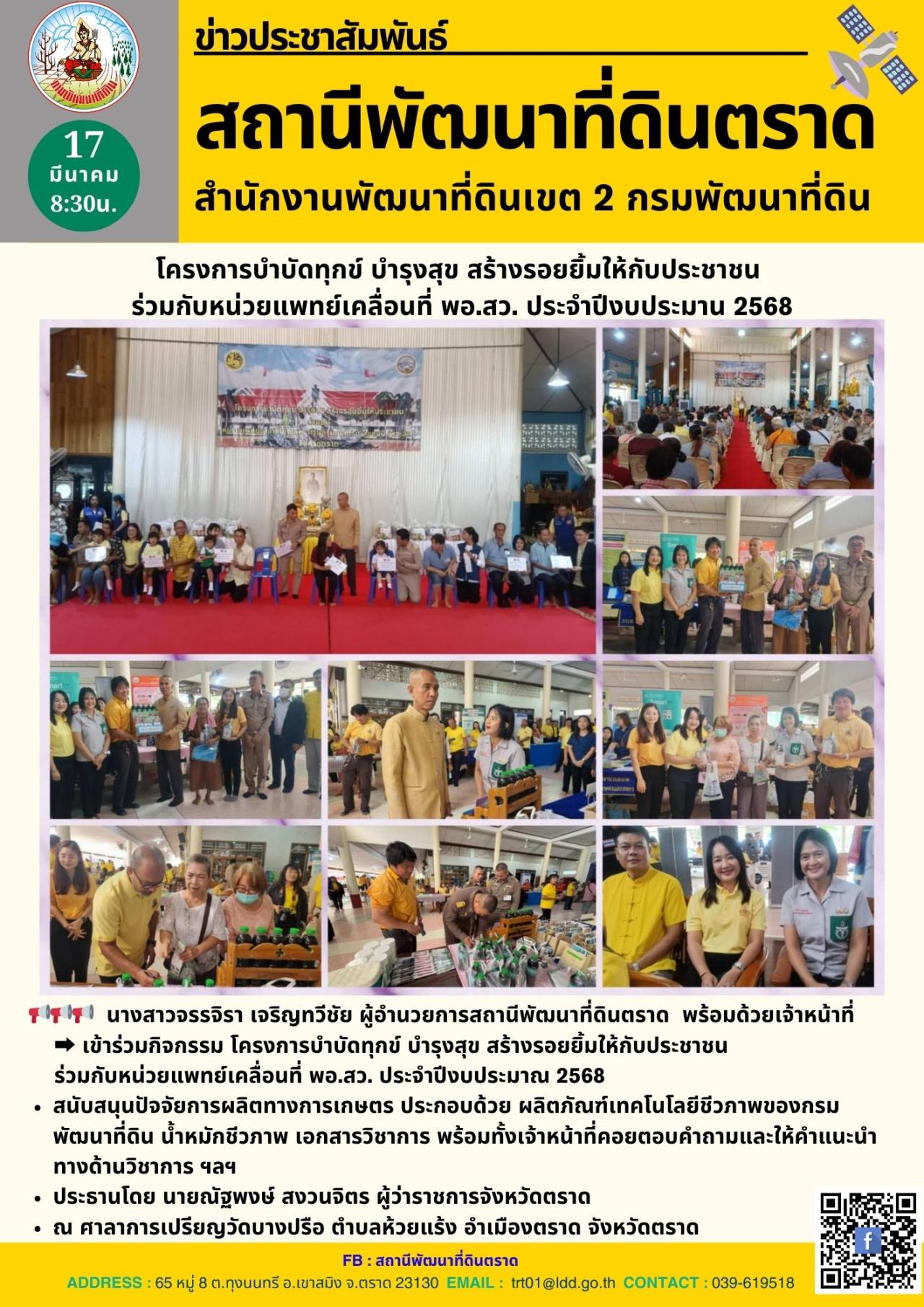 📢📢📢 นางสาวจรรจิรา เจริญทวีชัย ผู้อำนวยการสถานีพัฒนาที่ดินตราด พร้อมด้วยเจ้าหน้าที่