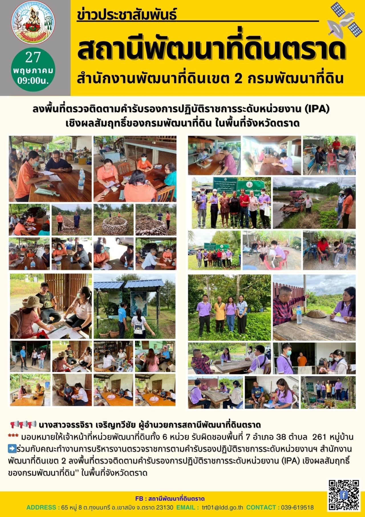➡️ร่วมกับคณะทำงานการบริหารงานตรวจราชการตามคำรับรองปฏิบัติราชการระดับหน่วยงานฯ สำนักงานพัฒนาที่ดินเขต 2 ลงพื้นที่ตรวจติดตามคำรับรองการปฏิบัติราชการระดับหน่วยงาน (IPA) เชิงผลสัมฤทธิ์ของกรมพัฒนาที่ดิน’’ ในพื้นที่จังหวัดตราด
