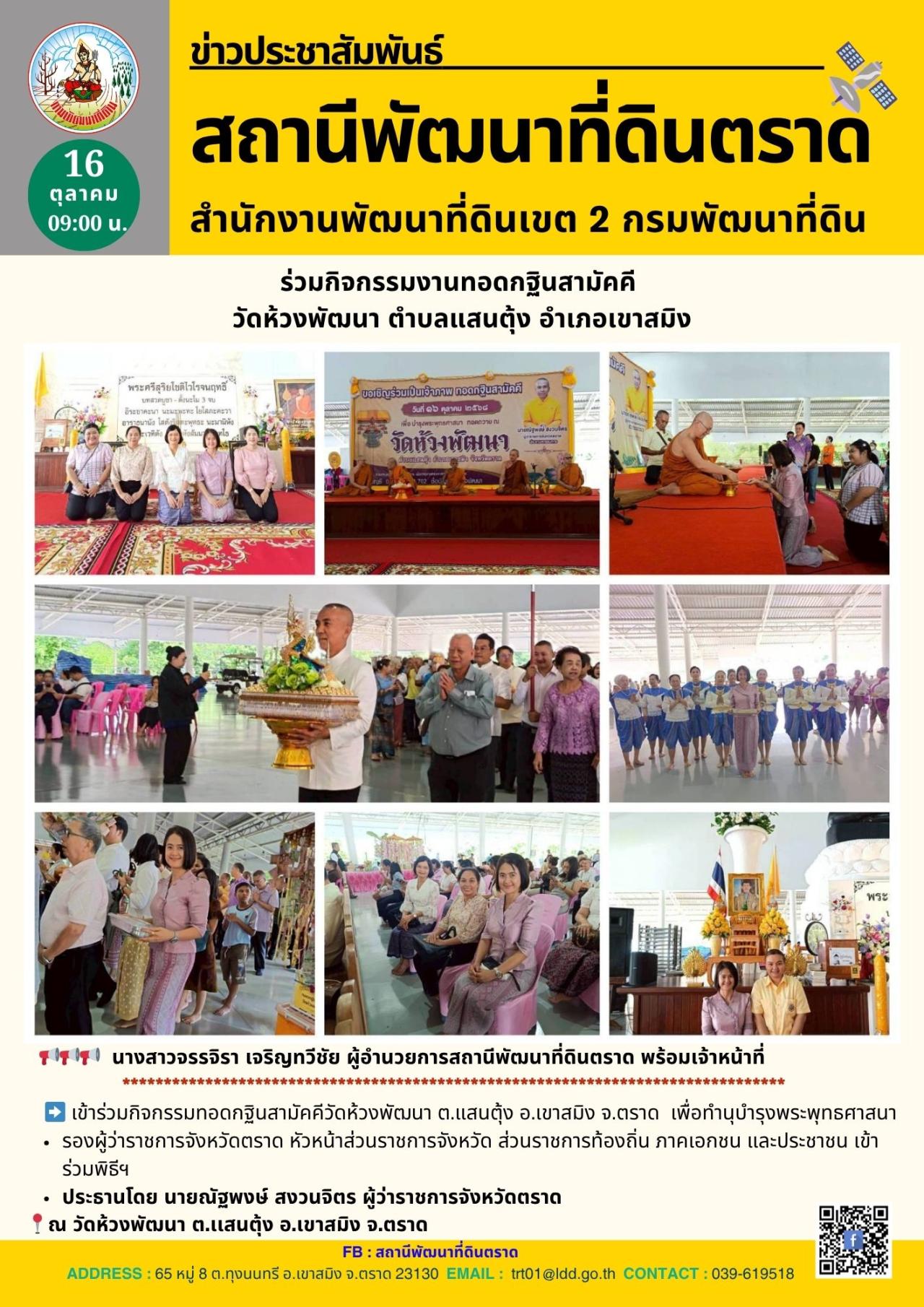 เข้าร่วมกิจกรรมทอดกฐินสามัคคีวัดห้วงพัฒนา ต.แสนตุ้ง อ.เขาสมิง จ.ตราด เพื่อทำนุบำรุงพระพุทธศาสนา