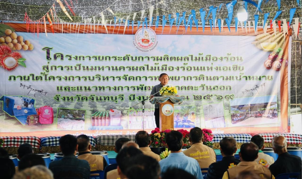🎗️ โดยนายธนภณ กิจกาญจน์ นายกองค์การบริหารส่วนจังหวัดจันทบุรี ให้เกียรติเป็นประธานในพิธีเปิดงาน พร้อมกล่าวถึงความสำคัญและประโยชน์ที่เกษตรกรจะได้รับในโครงการต่อไป