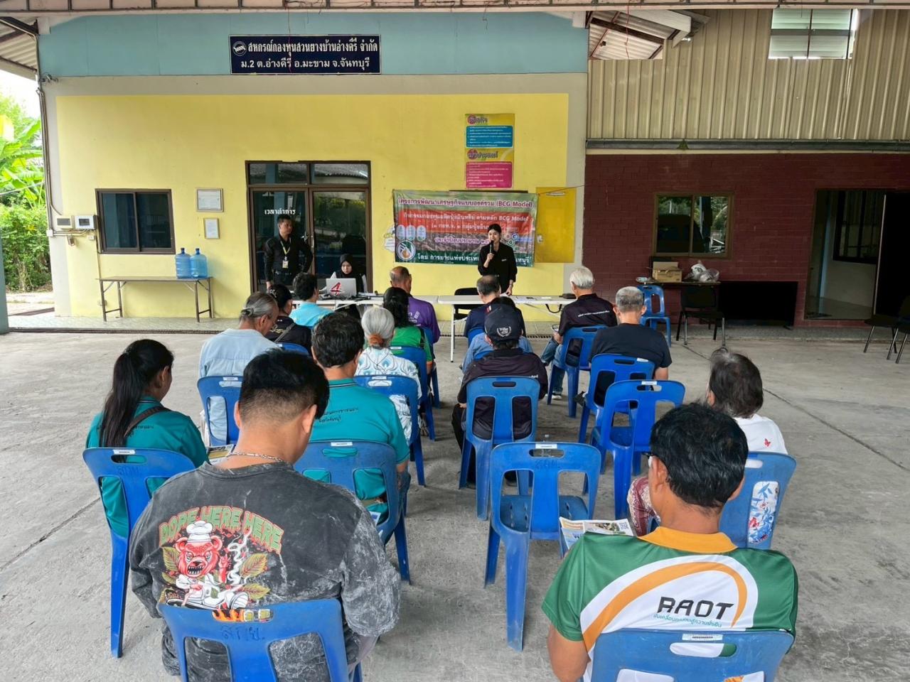🎗️น.ส.จรรจิรา เจริญทวีชัย ผู้อำนวยการสถานีพัฒนาที่ดินจันทบุรี มอบหมายให้เจ้าหน้าที่หน่วยวิชาการฯ ร่วมเป็นวิทยากรในโครงการขับเคลื่อนเศรษฐกิจเพื่อความยั่งยืน (BCG Model) ให้กับกลุ่มเกษตรกรผู้ปลูกยางพารา ตำบลอ่างคีรี อำเภอมะขาม ในหัวข้อ"การผลิตปุ๋ยอินทรีย์คุณภาพสูง สูตรกรมพัฒนาที่ดิน"