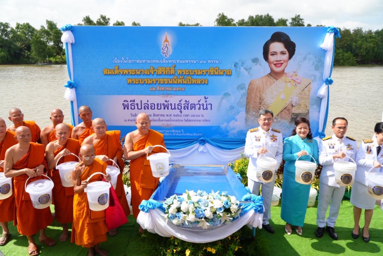 💙 เข้าร่วมประกอบพิธีเจริญพระพุทธมนต์และทำบุญตักบาตรถวายเป็นพระราชกุศล พิธีปล่อยพันธุ์สัตว์น้ำจำนวน 201,900 ตัว ลงสู่แม่น้ำบางปะกง เพื่ออนุรักษ์และเพิ่มความอุดมสมบูรณ์ของทรัพยากรธรรมชาติทางน้ำ