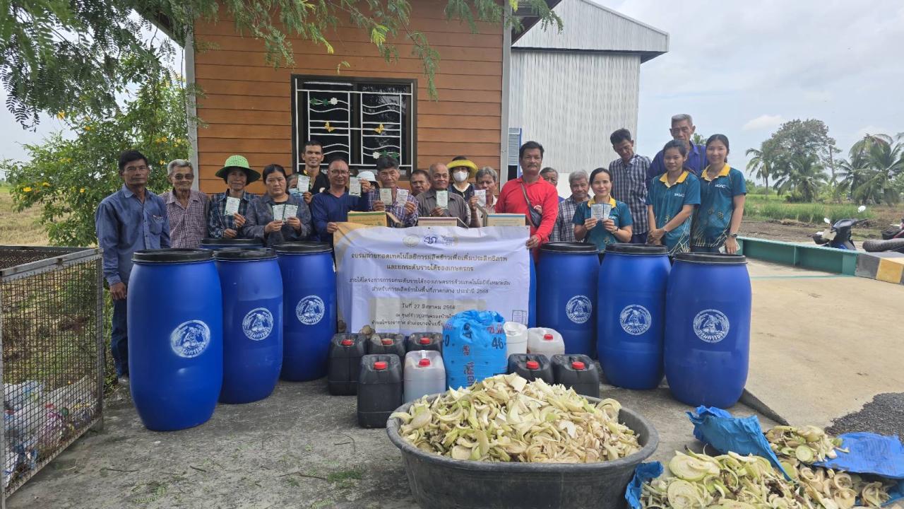 🌾สาธิตการทำน้ำหมักจุลินทรีย์หน่อกล้วยด้วยสารเร่งซุปเปอร์ พด.2 พด.3 พด.6 เพื่อย่อยสลายฟาง