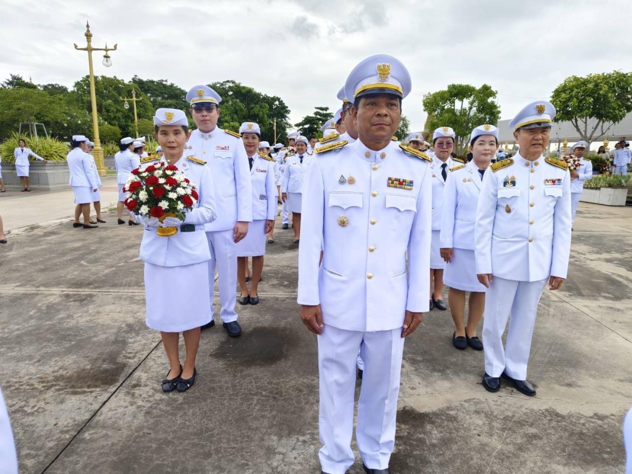 โดยมีนายสันติ รังษิรุจิ ผู้ว่าราชการจังหวัดฉะเชิงเทรา เป็นประธานฝ่ายฆราวาส นำหัวหน้าส่วนราชการ เหล่ากาชาดจังหวัด ข้าราชการ เจ้าหน้าที่ ตลอดจนพสกนิกรทุกหมู่เหล่า ร่วมประกอบพิธีด้วยความสำนึกในพระมหากรุณาธิคุณอันหาที่สุดมิได้