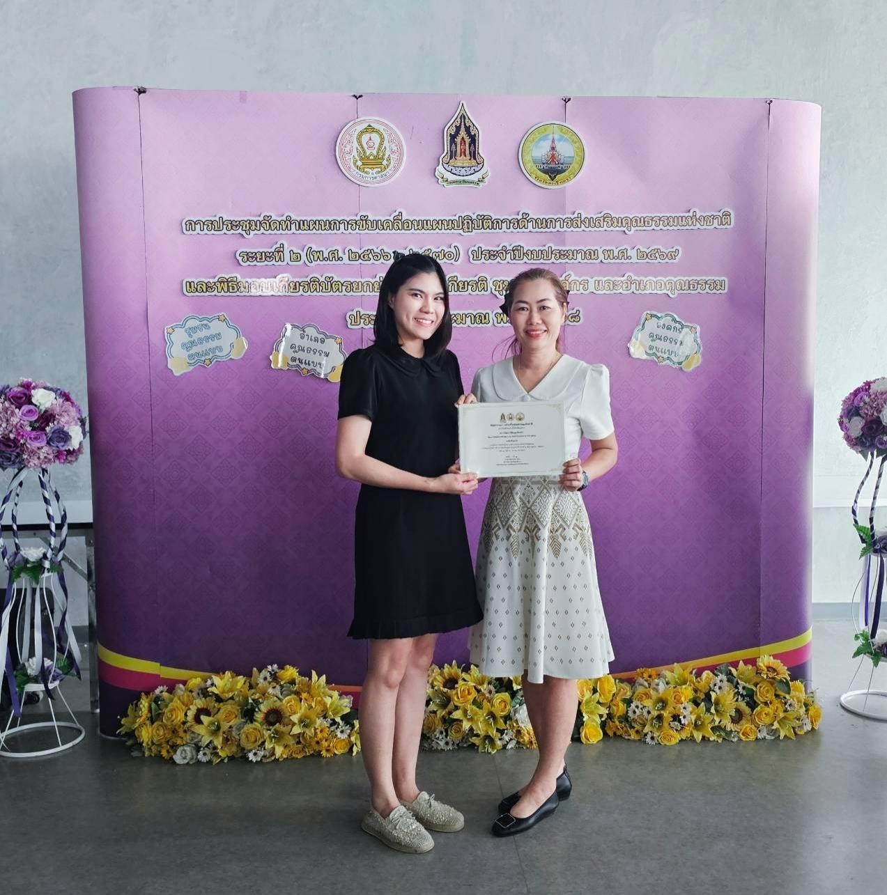 🥭นางสาวดรุณี แก้วคำ และเจ้าหน้าที่ฯ เป็นตัวแทนรับมอบเกียรติบัตรประกาศยกย่ององค์กรต้นแบบ