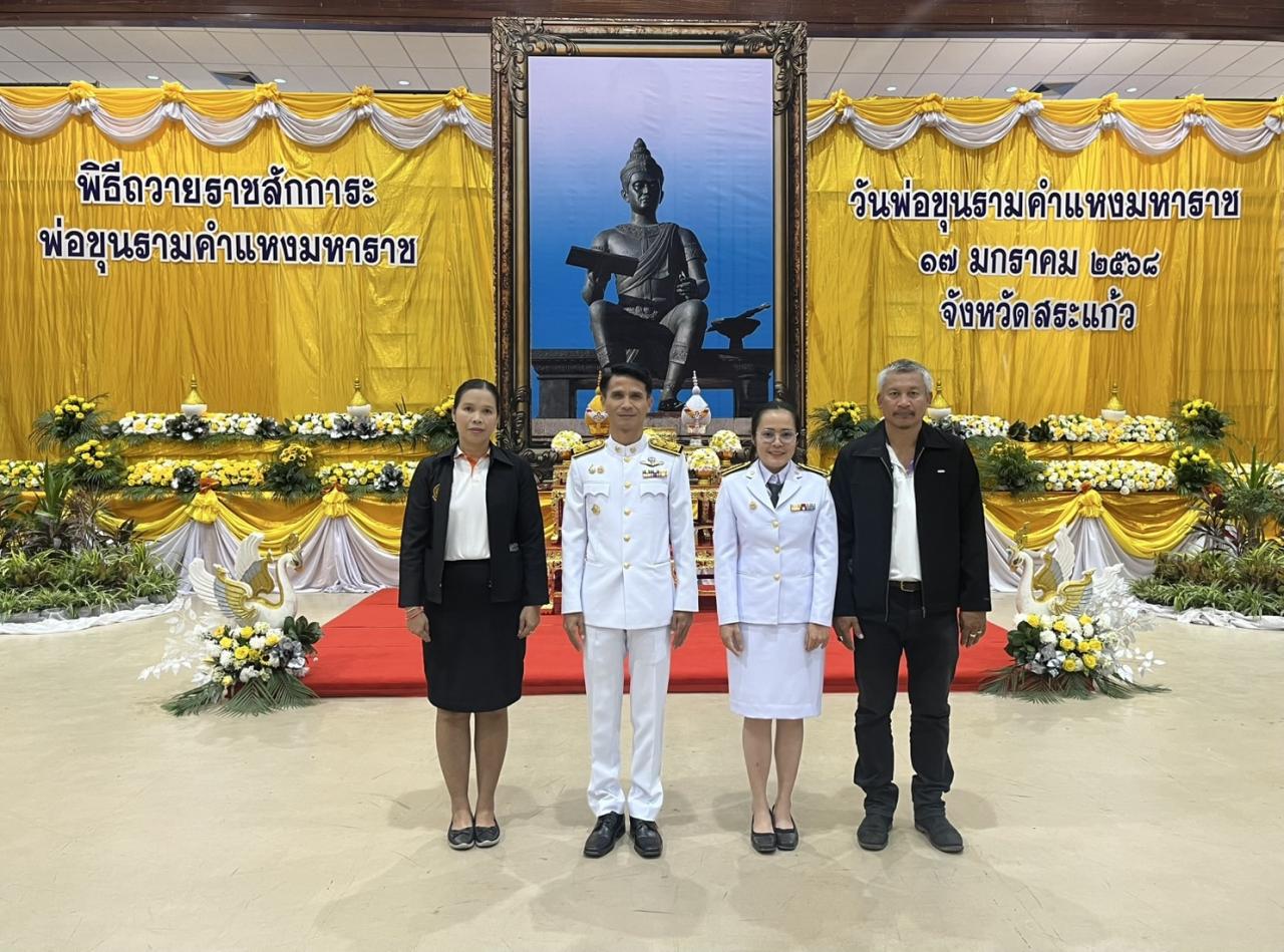 วันศุกร์ที่ 17 มกราคม พ.ศ.2568 นายขจรยศ สมสาย ผู้อำนวยการสถานีพัฒนาที่ดินสระแก้ว พร้อมเจ้าหน้าที่ ร่วมงานพิธีถวายราชสักการะ “ พ่อขุนรามคำแหงมหาราช ” (วันพ่อขุนรามคำแหงมหาราช) ประกอบด้วยพิธีสวดพระพุทธมนต์ถวายพระราชกุศล พิธีวางพุ่มดอกไม้ และถวายสดุดี โดยมีนายปริญญา โพธิสัตย์ ผู้ว่าราชการจังหวัดสระแก้ว ประธานพิธี เพื่อนัอมรำลึกในพระมหากรุณาธิคุณของพ่อขุนรามคำแหงมหาราช ณ หอประชุมปางสีดา ศาลากลางจังหวัดสระแก้ว อำเภอเมือง จังหวัดสระแก้ว