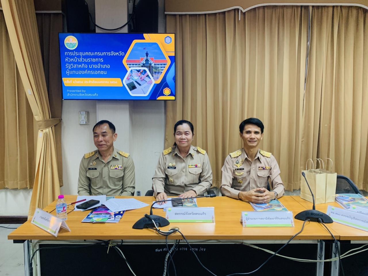 วันอังคารที่ 28 มกราคม พ.ศ.2568 นายขจรยศ สมสาย ผู้อำนวยการสถานีพัฒนาที่ดินสระแก้ว ร่วมประชุมคณะกรมการจังหวัดสระแก้ว ครั้งที่ 1/2568 ประจำเดือน มกราคม 2568 โดยนายเชาวเนตร ยิ้มประเสริฐ รองผู้ว่าราชการจังหวัดสระแก้ว ประธานการประชุม พร้อมด้วยหัวหน้าส่วนราชการ หัวหน้าหน่วยงานรัฐวิสาหกิจ นายอำเภอ และผู้แทนองค์กรเอกชน จังหวัดสระแก้ว เข้าร่วมการประชุมเพื่อให้ส่วนราชการ/หน่วยงาน ได้ชี้แจงและรายงานผลการดำเนินงานของหน่วยงานที่ผ่านมา รวมถึงการหารือข้อราชการที่สำคัญของจังหวัดสระแก้ว ณ ห้องประชุมบูรพา ชั้น 4 ศาลากลางจังหวัดสระแก้ว ตำบลท่าเกษม อำเภอเมืองสระแก้ว จังหวัดสระแก้ว