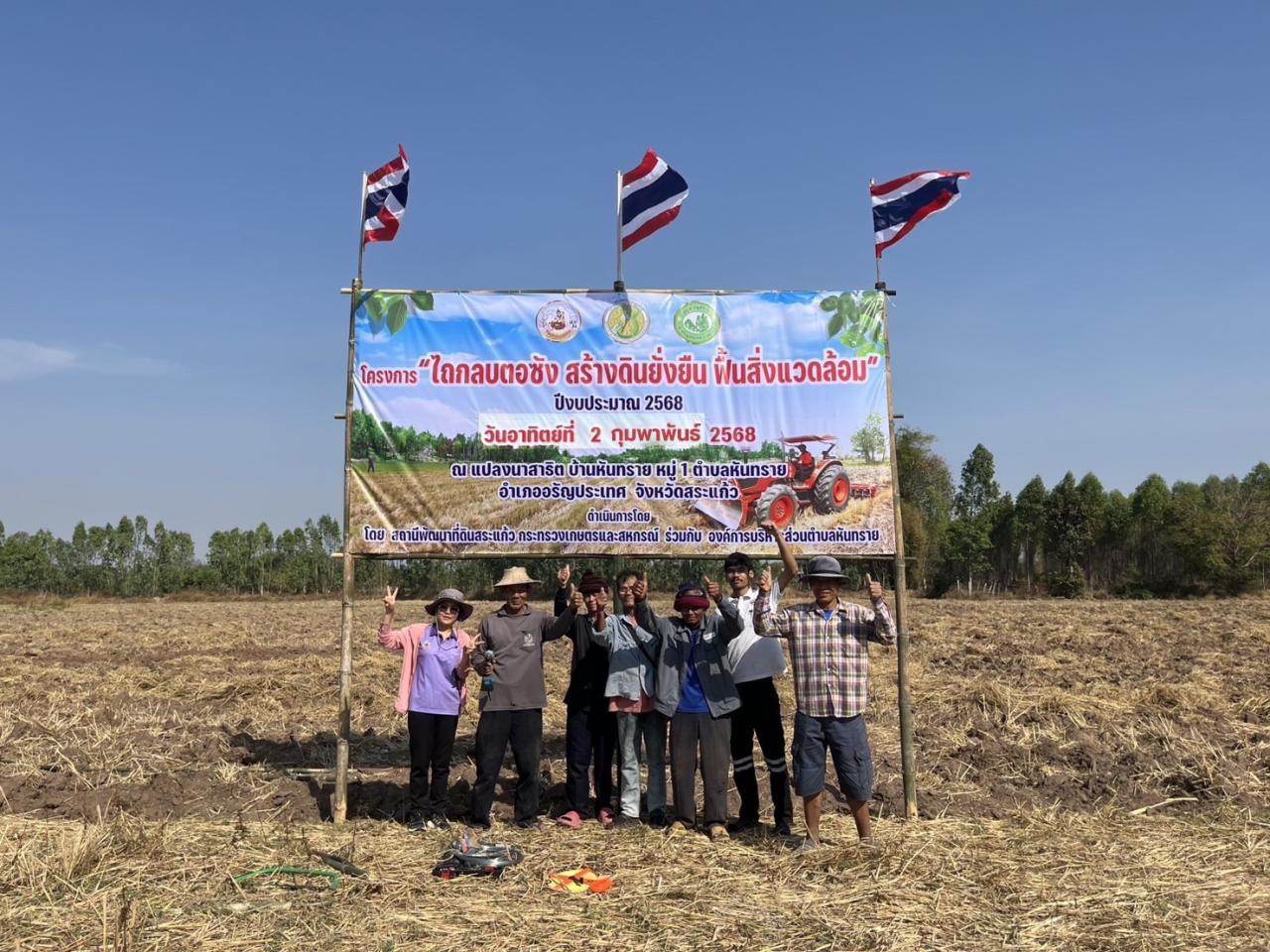 วันพุธที่ 29 มกราคม พ.ศ.2568 นายขจรยศ สมสาย ผู้อำนวยการสถานีพัฒนาที่ดินสระแก้ว พร้อมด้วยเจ้าหน้าที่ เตรียมพื้นที่จัดงานกิจกรรมรณรงค์ไถกลบตอซัง ปี 2568 ณ แปลงนาสาธิต ต.หันทราย อ.อรัญประเทศ จ.สระแก้ว เพื่อช่วยลดปัญหาหมอกควันและฝุ่นละออง ให้เกษตรกรได้ใช้ที่ดินอย่างเหมาะสม