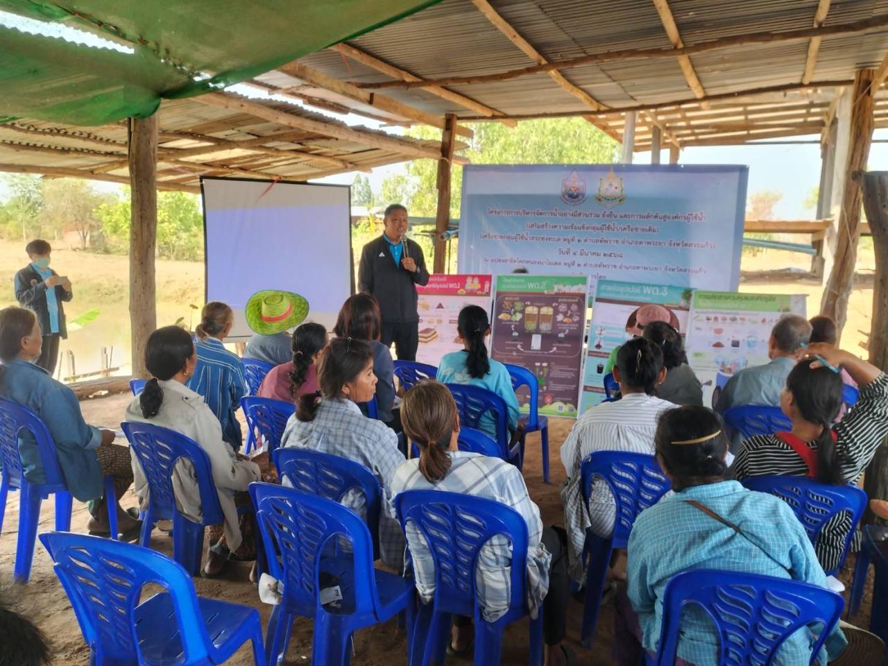 วันอังคารที่ 4 มีนาคม 2568 นายขจรยศสมสาย ผู้อำนวยการสถานีพัฒนาที่ดินสระแก้ว มอบนายให้นายนิวัฒน์ อินทร์หอม เจ้าพนักงานการเกษตรชำนาญงาน และนางสาววิไลลักษณ์ อินทโชตินักวิชาการเกษตร เป็นวิทยากรอบรมโครงการบริหารจัดการน้ำอย่างมีส่วนร่วมยั่งยืนและการผลักดันสู่องค์กรผู้ใช้น้ำ(เสริมสร้างความเข้มแข็งกลุ่มผู้ใช้น้ำ/เครือข่ายเดิม) หลักสูตรการผลิตและการใช้ประโยชน์จากน้ำหมักชีวภาพ เพื่อสนับสนุน เครือข่ายกลุ่มผู้ใช้น้ำสระทุ่มทะเล หมู่ 2 ตำบลทัพราช อำเภอตาพระยา จังหวัดสระแก้ว ให้มีองค์ความรู้เกี่ยวกับการใช้น้ำหมักชีวภาพและสามารถผลิตน้ำหมักชีวภาพใช้ในแปลงเกษตรกรและเป็นการลดต้นทุนเพิ่มรายได้ได้อย่างยั่งยืน ณ แปลงสาธิตโคกหนองนาโมเดล หมู่ 2 ตำบลทัพราช อำเภอตาพระยา จังหวัดสระแก้ว