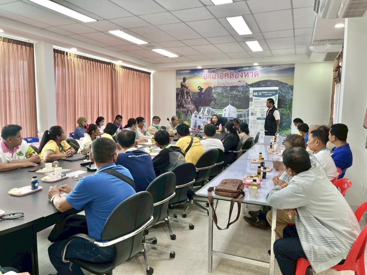 วันพฤหัสบดีที่ 29 พฤษภาคม 2568 นายขจรยศ สมสาย ผู้อำนวยการสถานีพัฒนาที่ดินสระแก้ว มอบหมายให้นางสาวภานุชนาถ อรุณศรี นักวิชาการเกษตรปฏิบัติการ พร้อมด้วยเจ้าหน้าที่ ดำเนินการโครงการอบรมหมอดินอาสา หลักสูตร 3 การพัฒนาศักยภาพของหมอดินอาสา ด้านการพัฒนาที่ดินตามบริบทท้องถิ่น ปีงบประมาณ 2568 ณ ห้องประชุม ชั้น2 ที่ว่าการอำเภอคลองหาด จังหวัดสระแก้ว วัตถุประสงค์ เพื่อให้หมอดินอาสา ได้เรียนรู้เทคโนโลยี ในการพัฒนาที่ดิน ที่เหมาะสมกับสภาพพื้นที่ เพื่อให้หมอดินอาสา มีส่วนร่วมในการแสดงความคิดเห็น แลกเปลี่ยนความรู้ การแก้ปัญหาด้านดิน จากประสบการณ์ในการทำการเกษตรของตนเอง เพื่อสร้างเครือข่าย สาขาอาชีพต่างๆ ของหมอดินอาสาและจัดทำต้นแบบหมอดินอาสาในการแก้ไขปัญหาดินต่างๆ โดยมีหมอดินอาสา อำเภอคลองหาดและอำเภอวังสมบูรณ์ จังหวัดสระแก้ว เข้ารับการฝึกอบรมในครั้งนี้