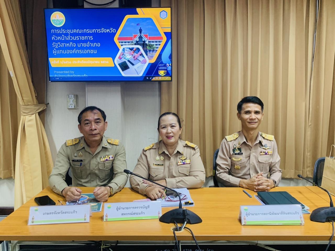 วันอังคารที่ 24 มิถุนายน 2568 นายขจรยศ สมสาย ผู้อำนวยการสถานีพัฒนาที่ดินสระแก้ว ร่วมประชุมคณะกรมการจังหวัดและหัวหน้าส่วนราชการฯ ครั้งที่ 5/2568 ประจำเดือนมิถุนายน 2568 ณ ห้องประชุมบูรพา ชั้น 4 ศาลากลางจังหวัดสระแก้ว โดยมีนายปริญญา โพธิสัตย์ ผู้ว่าราชการจังหวัดสระแก้ว พร้อมด้วย นายเชาวเนตร ยิ้มประเสริฐ รองผู้ว่าราชการจังหวัดสระแก้ว นางพัชรี ศาลาศิลป์ รองผู้ว่าราชการจังหวัดสระแก้ว และพันเอกสุชญาณ ศรีตระกูล รองผู้อำนวยการรักษาความมั่นคงภายในจังหวัดสระแก้ว ประธานการประชุมพร้อมหัวหน้าส่วนราชการเข้าร่วมเพื่อติดตามผลการดำเนินงานและปัญหาอุปสรรคในการดำเนินงาน