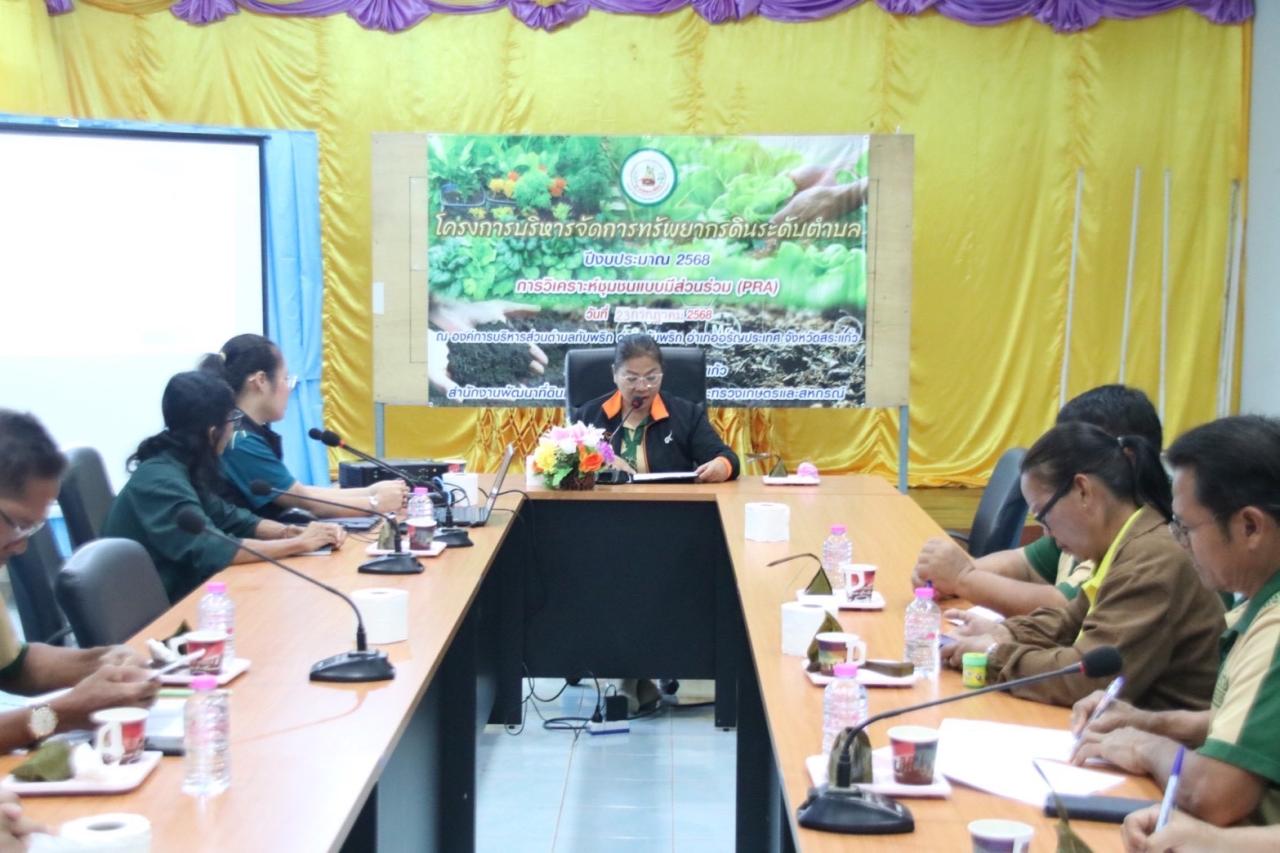 วันที่ 23 กรกฎาคม 2568 นายขจรยศ สมสาย ผู้อำนวยการสถานีพัฒนาที่ดินสระแก้ว มอบหมายให้นางสาวเปรมฤทัย ศรีภุมมา นักวิชาการเกษตรปฏิบัติการ พร้อมดัวยนายธนศักดิ์ แผลงกระโทก นักวิชาการเกษตร ดำเนินการจัดทำโครงการบริหารจัดการทรัพยากรดินระดับตำบล ปีงบประมาณ 2568 ตำบลทับพริก อำเภออรัญประเทศ จังหวัดสระแก้ว โดยมี นางรัตนากร พุฒเส็ง นายกองค์การบริหารส่วนตำบลทับพริก สมาชิกสภาองค์การบริหารส่วนตำบลทับพริก ผู้นำชุมชน และหมอดินอาสา เข้าร่วมเพื่อให้การจัดทำแผนการใช้ที่ดินระดับตำบลมีมาตรฐานถูกต้องและสร้างความเข้าใจไปในทิศทางเดียวกัน โดยผ่านกระบวนการมีส่วนร่วมของชุมชน(Participatory Rural Appraisal : PRA) ณ ห้องประชุมองค์การบริหารส่วนตำบลทับพริก อำเภออรัญประเทศ จังหวัดสระแก้ว