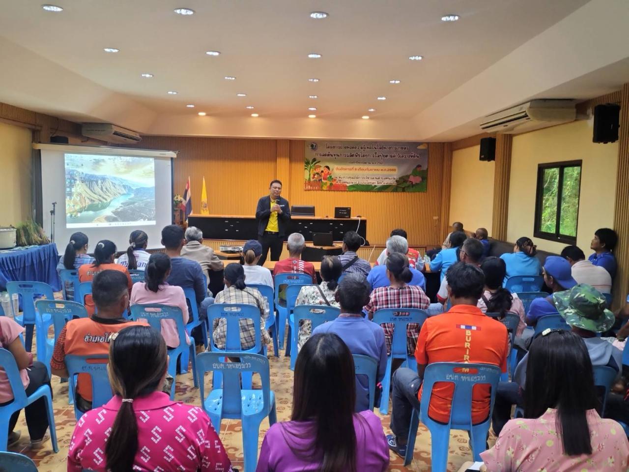 วันที่ 9 กันยายน 2568 นายขจรยศ สมสาย ผู้อำนวยการสถานีพัฒนาที่ดินสระแก้ว มอบหมายให้นายนิวัฒน์ อินทร์หอม เจ้าพนักงานการเกษตรชำนาญงาน พร้อมด้วยนางสาววิไลลักษณ์ อินทโชติ นักวิชาการเกษตร เข้าร่วมเป็นวิทยากรถ่ายทอดองค์ความรู้ด้านเทคโนโลยีทางการเกษตรของกรมพัฒนาที่ดิน และการใช้ปุ๋ยตามค่าวิเคราะห์ดิน แก่เกษตรกรในพื้นที่ตำบลหนองม่วงให้มีความเข้าใจในการพัฒนาเทคโนโลยีทางการเกษตร และการเพิ่มผลผลิตทางการเกษตร ลดต้นทุนของพืช ณ ห้องประชุมองค์การบริหารส่วนตำบลหนองม่วง อำเภอโคกสูง จังหวัดสระแก้ว