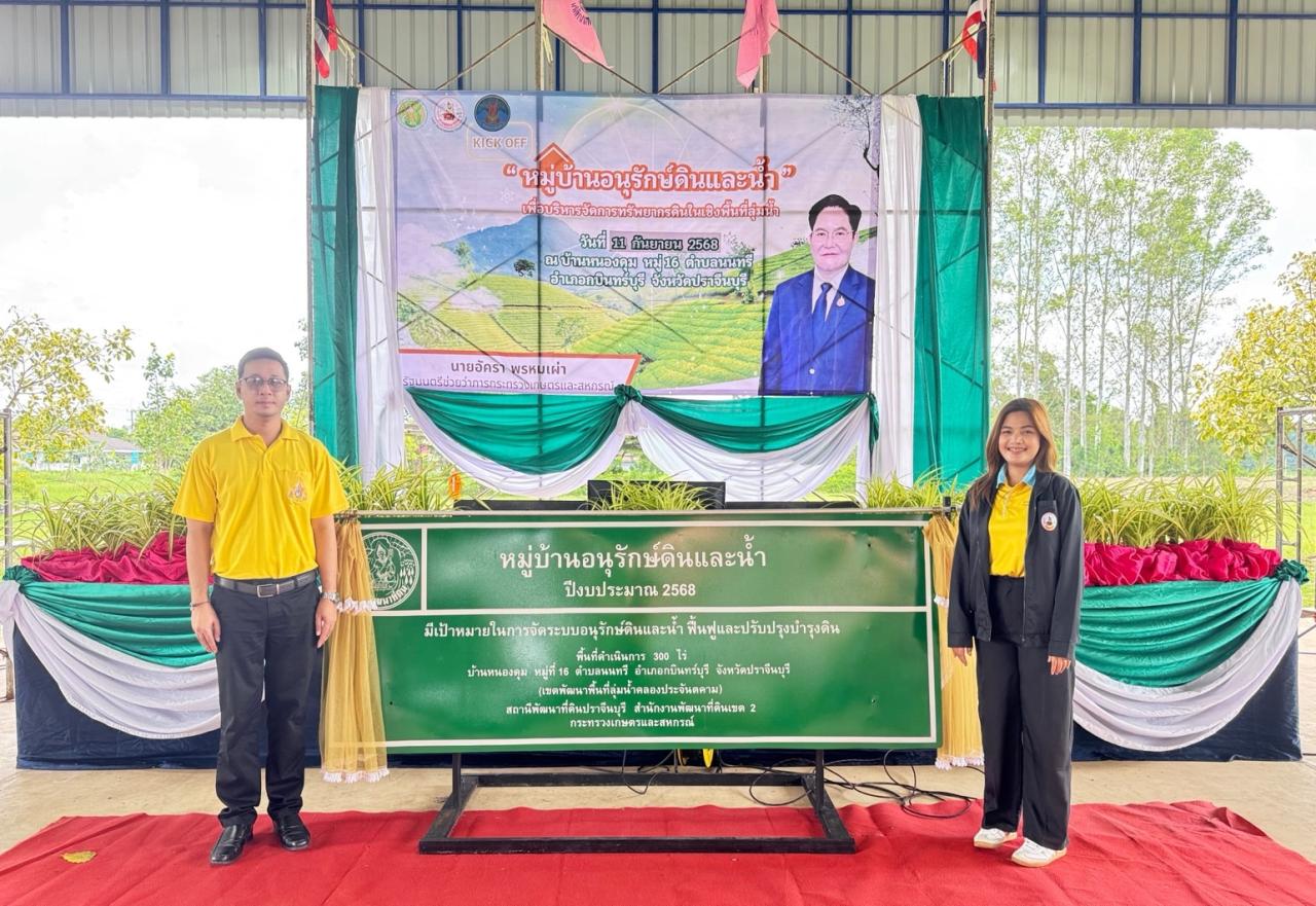 วันพฤหัสบดีที่ 11 กันยายน 2568 นายขจรยศ สมสาย ผู้อำนวยการสถานีพัฒนาที่ดินสระแก้ว มอบหมายให้นางสาวภานุชนาถ อรุณศรี นักวิชาการเกษตรปฏิบัติการ และนายณัฐพงศ์ พลไชย เจ้าพนักงานธุรการปฎิบัติงาน เข้าร่วมเปิดงาน Kick off “หมู่บ้านอนุรักษ์ดินและน้ำ” เพื่อบริหารจัดการทรัพยากรดินในเชิงพื้นที่ลุ่มน้ำ ปี 2568 ณ บ้านหนองดุม หมู่16 ตำบลนนทรี อำเภอกบินทร์บุรี จังหวัดปราจีนบุรี
