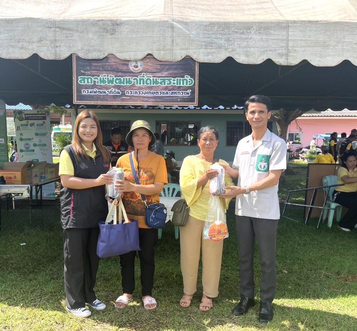 วันพฤหัสบดีที่ 18 กันยายน 2568 นายขจรยศ สมสาย ผู้อำนวยการสถานีพัฒนาที่ดินสระแก้ว พร้อมด้วยนางสาวภานุชนาถ อรุณศรี นักวิชาการเกษตรปฏิบัติการและเจ้าหน้าที่ เข้าร่วมจัดนิทรรศการโครงการปกป้องและเชิดชูสถาบันพระมหากษัตริย์ และโครงการหน่วยบำบัดทุกข์ บำรุงสุข สร้างรอยยิ้มให้ประชาชน จังหวัดสระแก้ว (จังหวัดเคลื่อนที่) ณ โรงเรียนสามัคคีสกุลอรุณวิทยา ตำบลไทรทอง อำเภอคลองหาด จังหวัดสระแก้ว โดยสถานีพัฒนาที่ดินสระแก้ว ได้บริการให้คำแนะนำการผลิตและใช้ปุ๋ยอินทรีย์ สนับสนุนสารเร่งซุปเปอร์ พด1. พด.2 พด.6 พด.7 น้ำหมักชีวภาพและปุ๋ยหมักให้แก่เกษตรกร