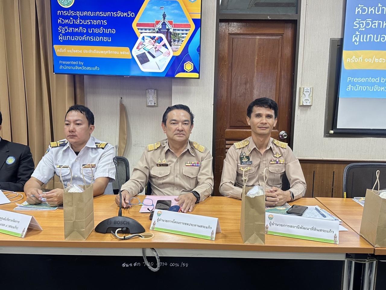 วันอังคารที่ 25 พฤศจิกายน 2568 นายขจรยศ สมสาย ผู้อำนวยการสถานีพัฒนาที่ดินสระแก้ว เข้าร่วมประชุมคณะกรมการจังหวัดสระแก้ว หัวหน้าส่วนราการ หัวหน้าหน่วยงานรัฐวิสาหกิจ นายอำเภอ และผู้แทนองค์กรเอกชนจังหวัดสระแก้ว ครั้งที่ 11 ประจำเดือนพฤศจิกายน 2568 เพื่อรับทราบข้อราชการผลการดำเนินงานโดยมีนายปริญญา โพธิสัตย์ ผู้ว่าราชการจังหวัดสระแก้ว เป็นประธานการประชุม ณ ห้องประชุมบูรพา ชั้น 4 ศาลากลางจังหวัดสระแก้ว