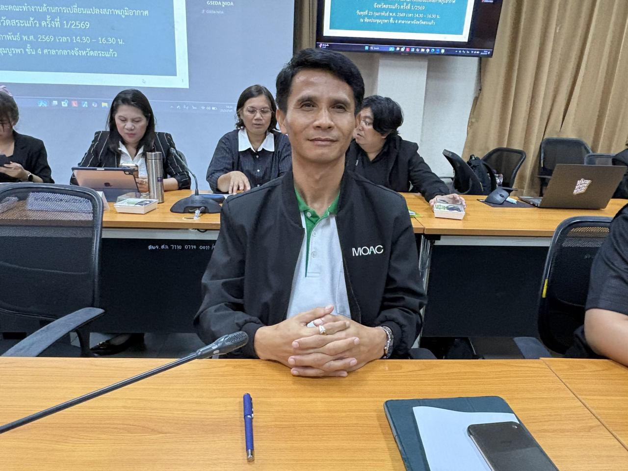 วันพุธที่ 25 กุมภาพันธ์ 2569 เวลา 14.30 น.นายขจรยศ สมสาย ผู้อำนวยการสถานีพัฒนาที่ดินสระแก้ว เข้าร่วมประชุมคณะกรรมการอำนวยการด้านการเปลี่ยนแปลงสภาพภูมิอากาศและคณะทำงานขับเคลื่อนแผนปฏิบัติการลดก๊าซเรือนกระจกระดับจังหวัดสระแก้ว ครั้งที่ 1/2569 เพื่อชี้แจงการดำเนินโครงการ โดยมีนายเชาวเนตร ยิ้มประเสริฐ รองผู้ว่าราชการจังหวัดสระแก้วเป็นประธานการประชุม พร้อมด้วยคณะกรรมการและคณะทำงานเข้าร่วมประชุม ณ ห้องประชุมบูรพา ชั้น 4 ศาลากลางจังหวัดสระแก้ว