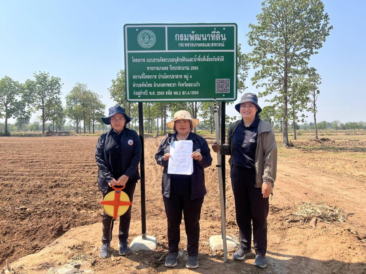 วันจันทร์ที่ 16 มีนาคม 2569 สถานีพัฒนาที่ดินสระแก้ว โดยนายนิวัฒน์ อินทร์หอม เจ้าพนักงานการเกษตรชำนาญงาน ผู้ควบคุมงานพร้อมคณะกรรมการตรวจรับงานจัดระบบอนุรักษ์ดินและน้ำในพื้นที่เสี่ยงภัยพิบัติทางการเกษตร ปีงบประมาณ 2569 ในพื้นที่บ้านโคกปราสาท หมู่ 4 ตำบลทัพไทย อำเภอตาพระยา จังหวัดสระแก้ว เพื่อให้ถูกต้องตามแบบมาตรฐานการก่อสร้างของกรมพัฒนาที่ดิน พร้อมส่งมอบให้แก่เกษตรกรได้ทำการเกษตรในพื้นที่ต่อไป